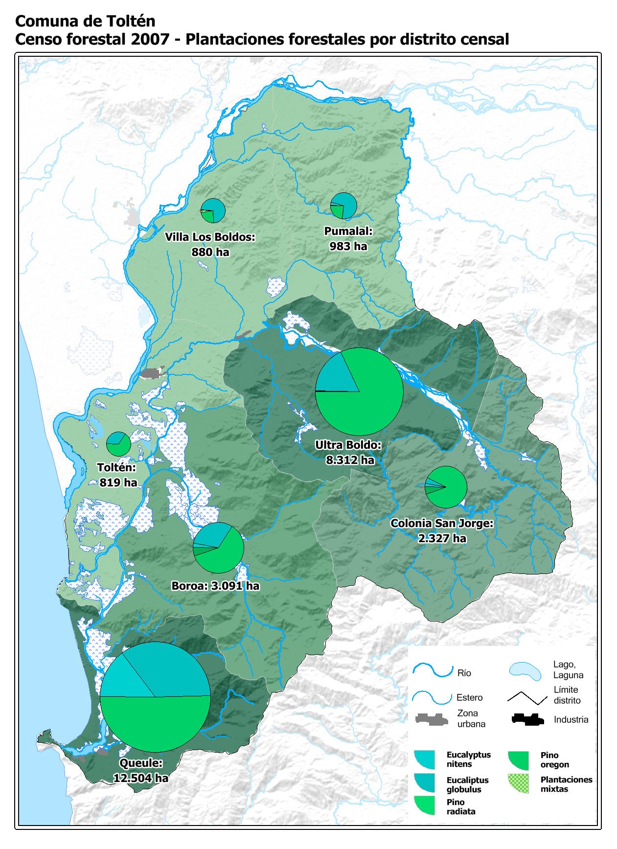 Censo agropecuario y forestal 2007. Plantaciones forestales por distrito censal.