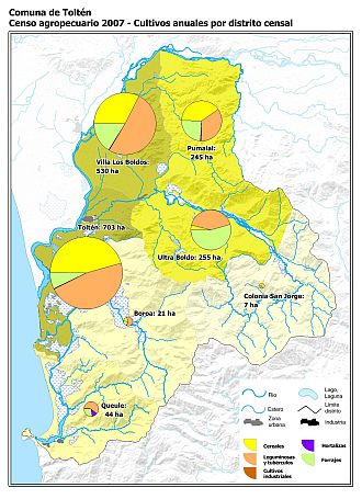 Censo agropecuario y forestal 2007. Superficie con cultivos anuales por distrito censal.