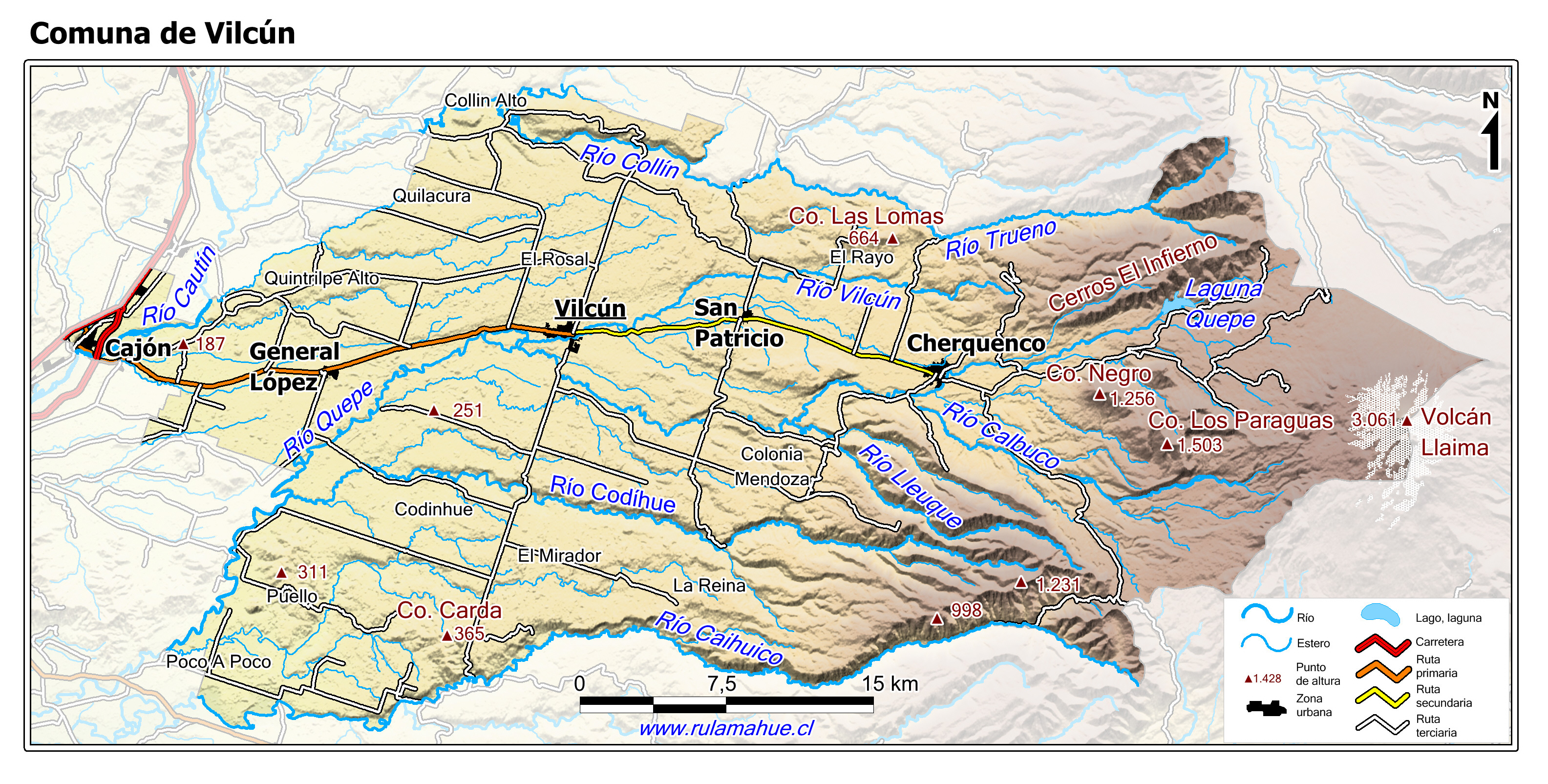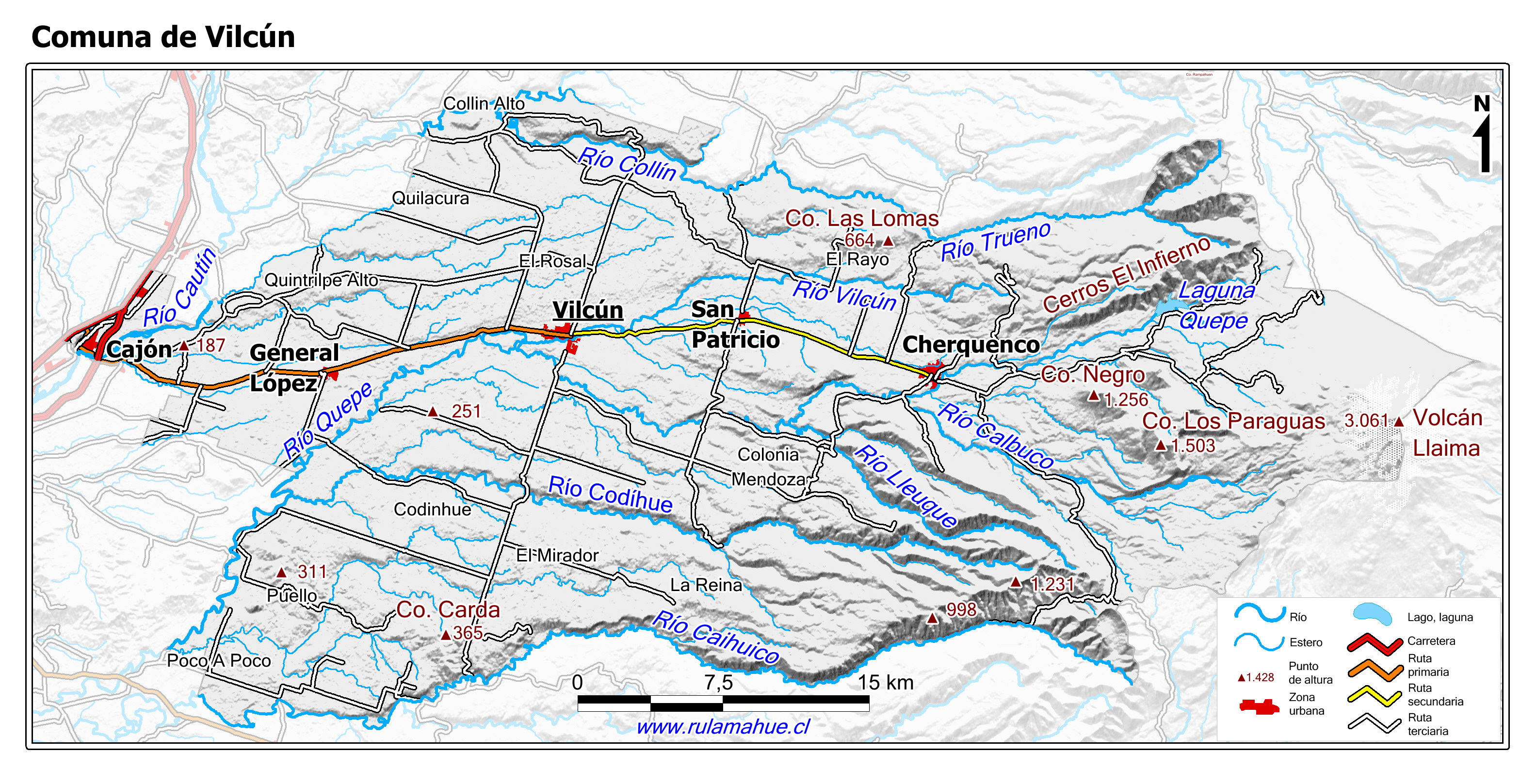 Mapa que muestra la ubicación y expansión de las zonas urbanas y la distribución de las casas rurales.