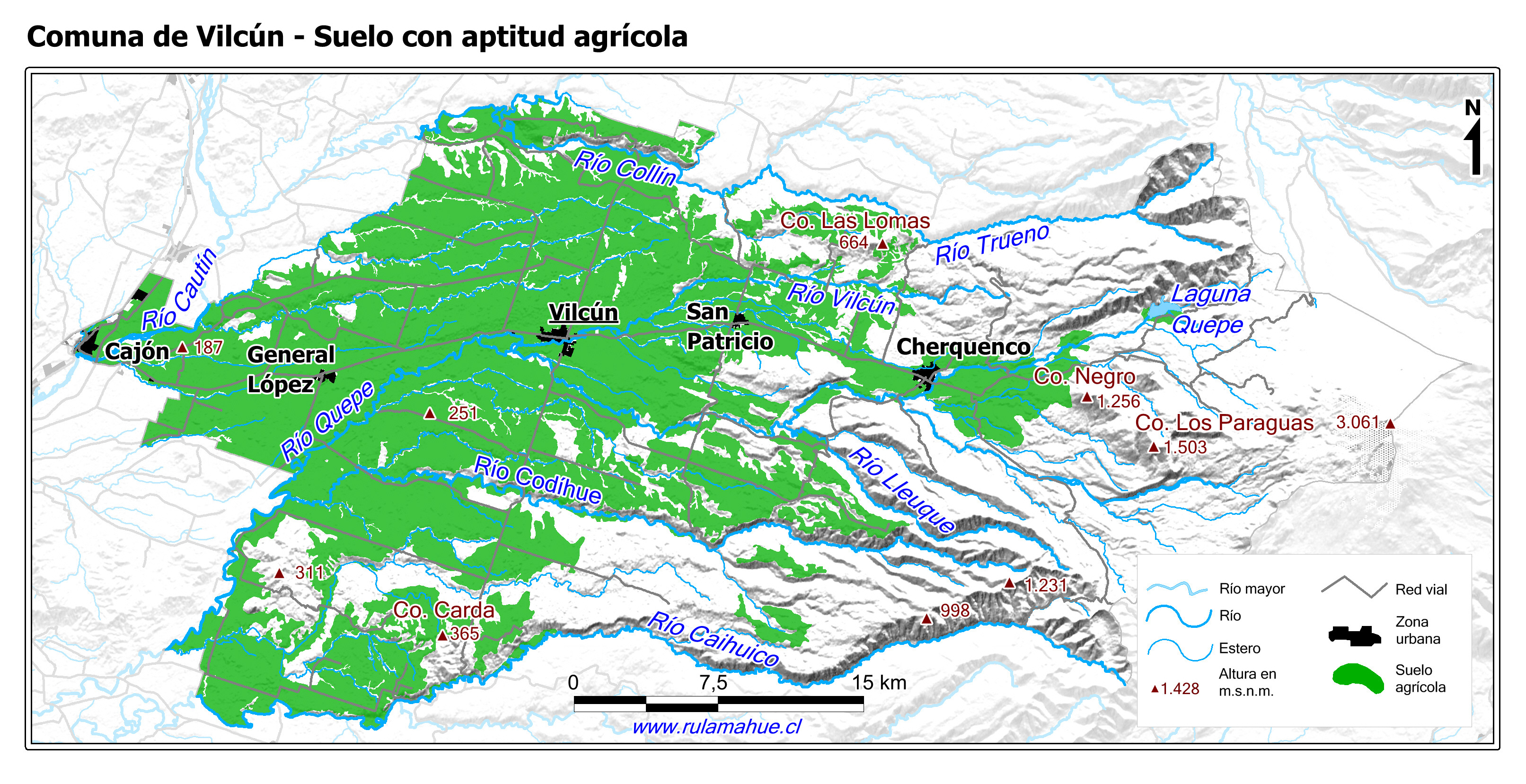 Mapa de la distribución de los suelos con aptitud agrícola según CIREN.