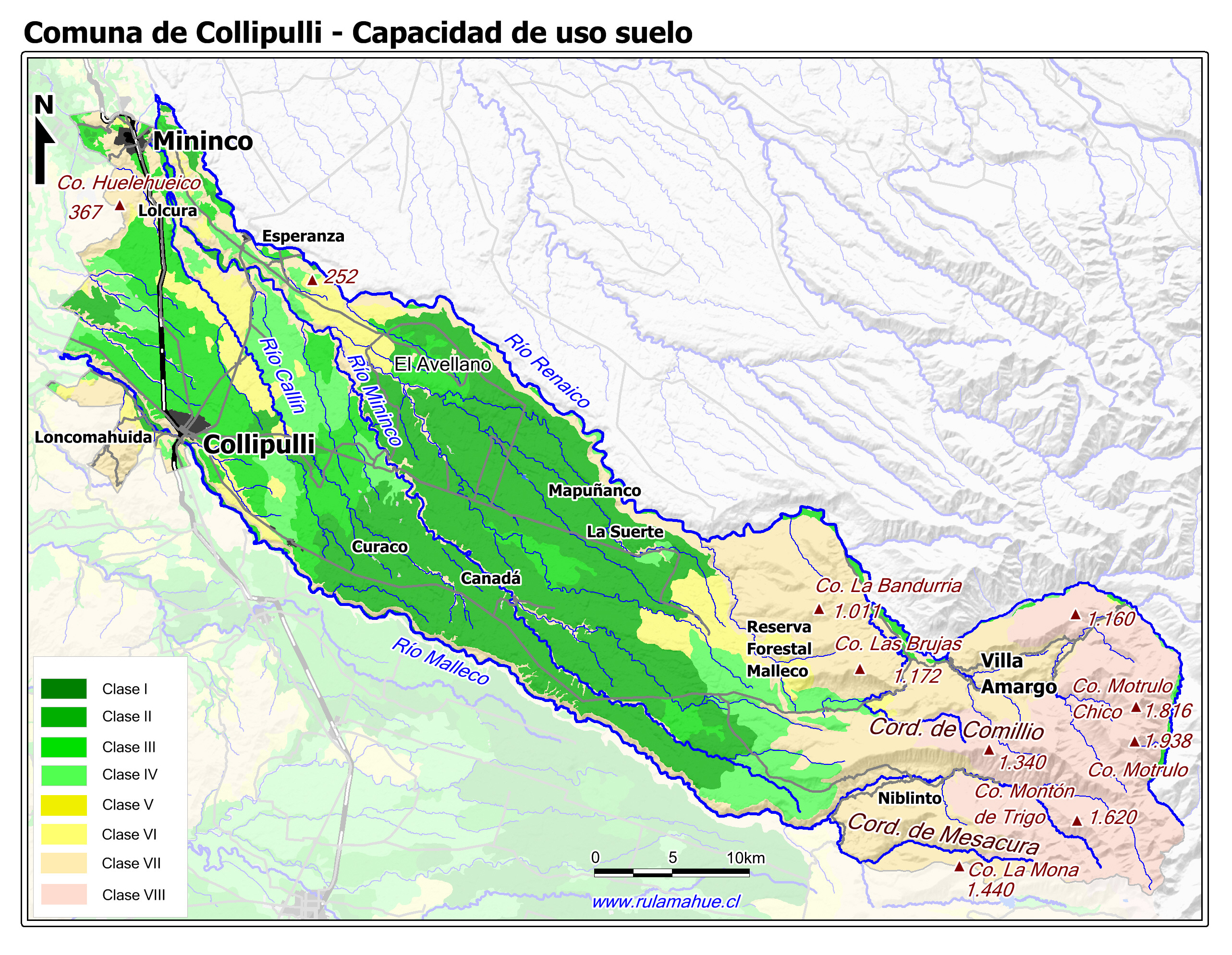 Mapa de la distribución de la capacidad de uso de los suelos CIREN.