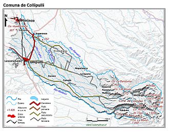 Mapa que muestra la ubicación y expansión de las zonas urbanas y la distribución de las casas rurales.