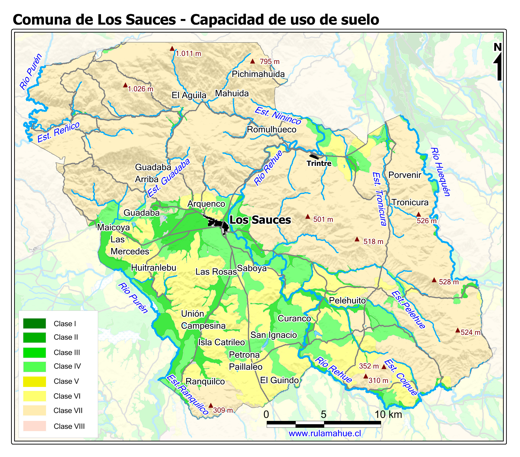 Mapa de la distribución de la capacidad de uso de los suelos CIREN.