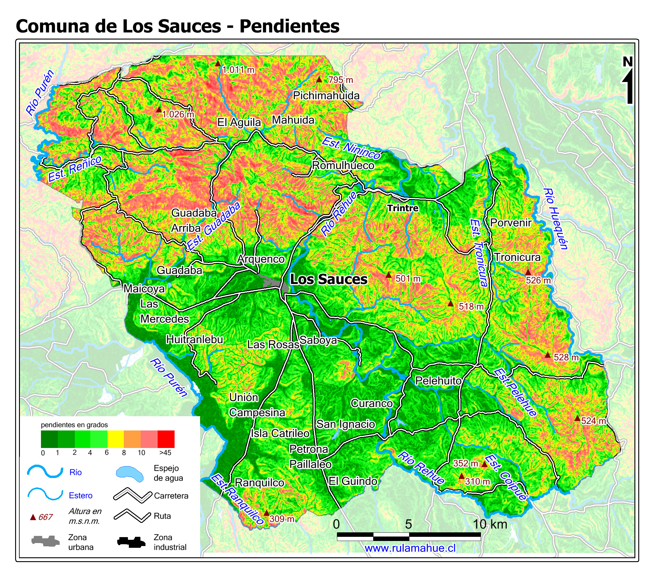 Mapa de las unidades del relieve de la Comuna.