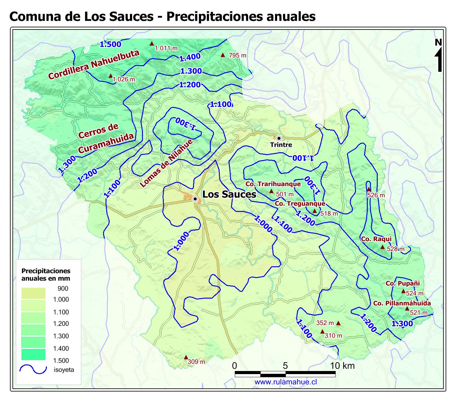 Mapa de la distribución de las precipitaciones anuales con datos del sitio web Worldclim.