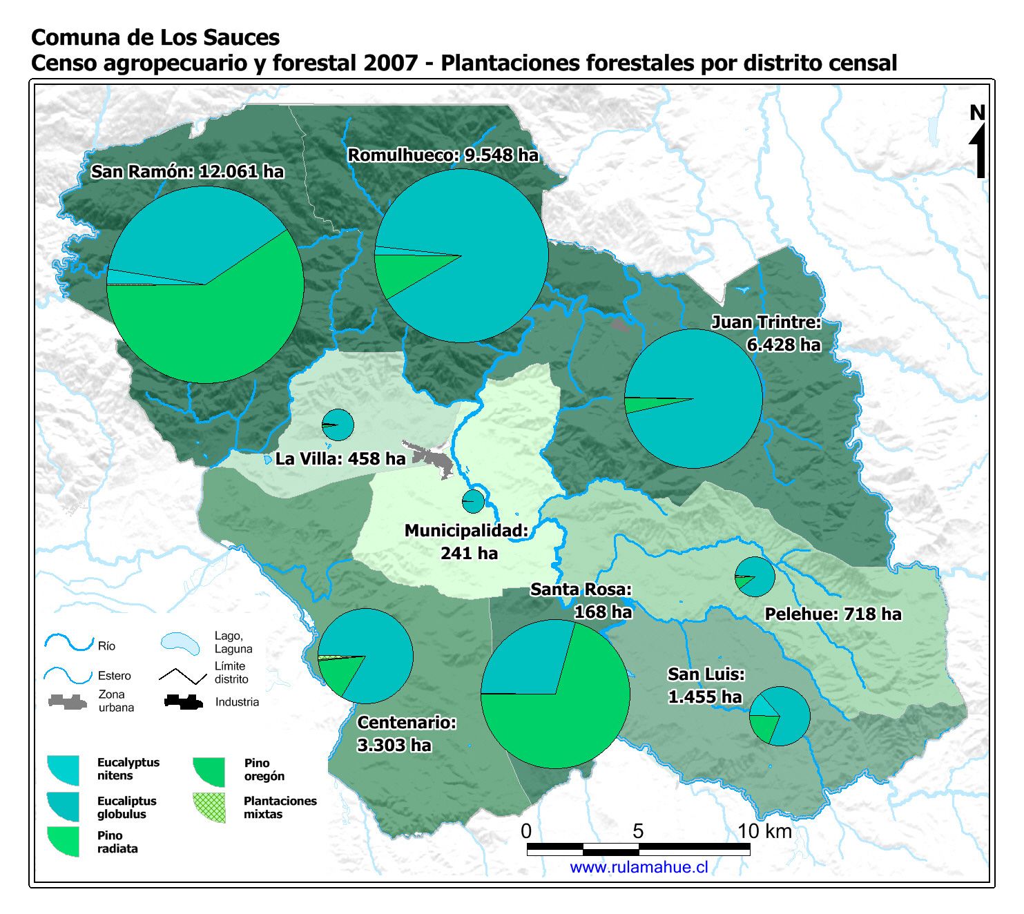 Censo agropecuario y forestal 2007. Plantaciones forestales por distrito censal.