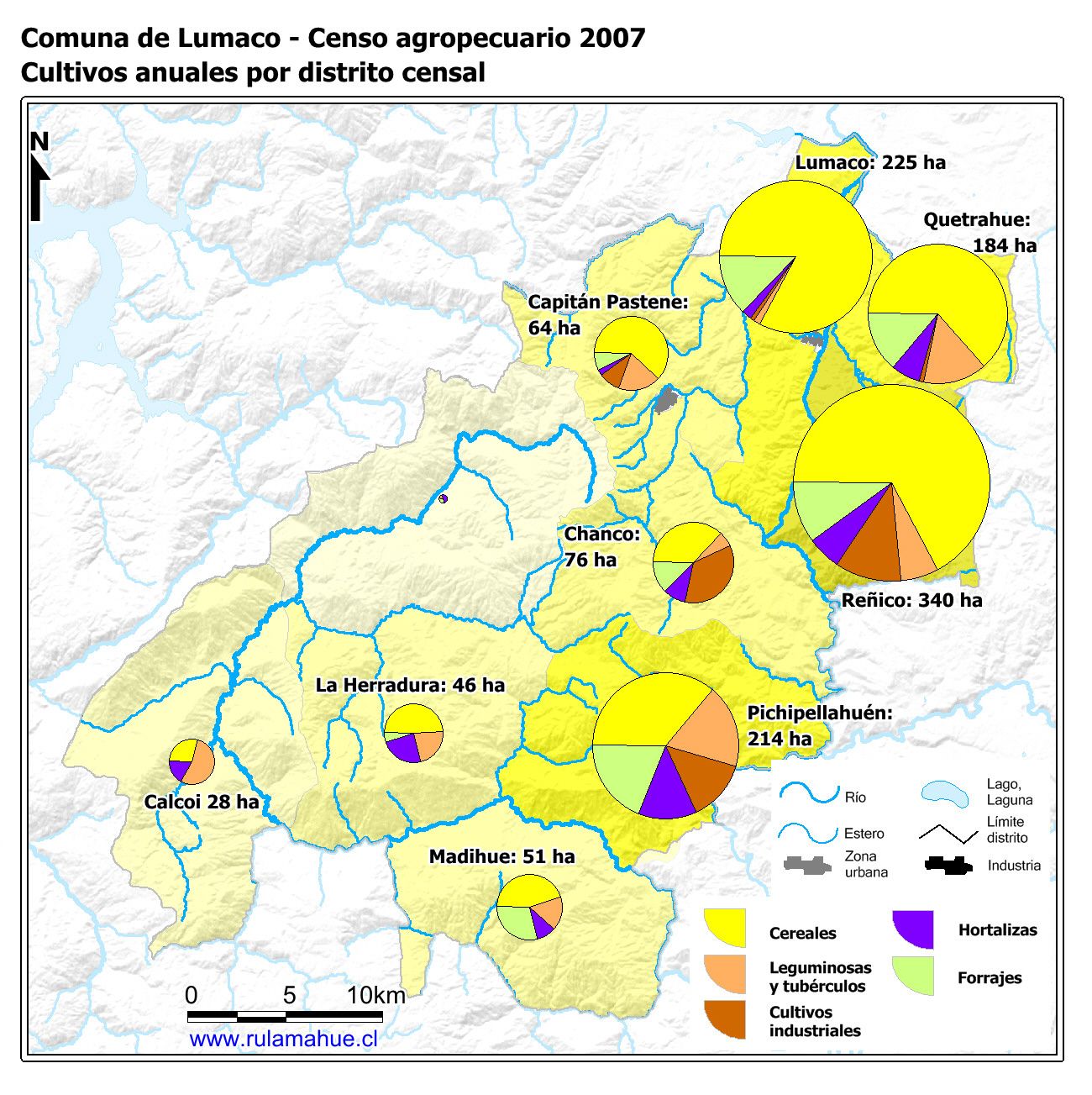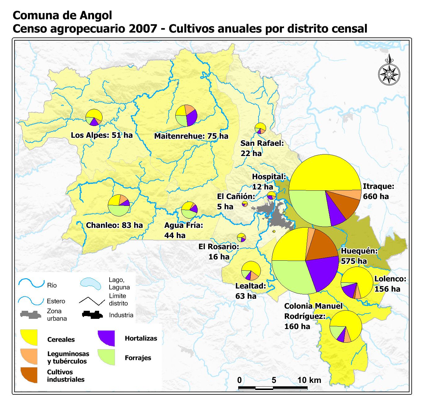 Los diferentes tipos de cultivos anuales por distrito censal de acuerdo información proporcionada por ODEPA.