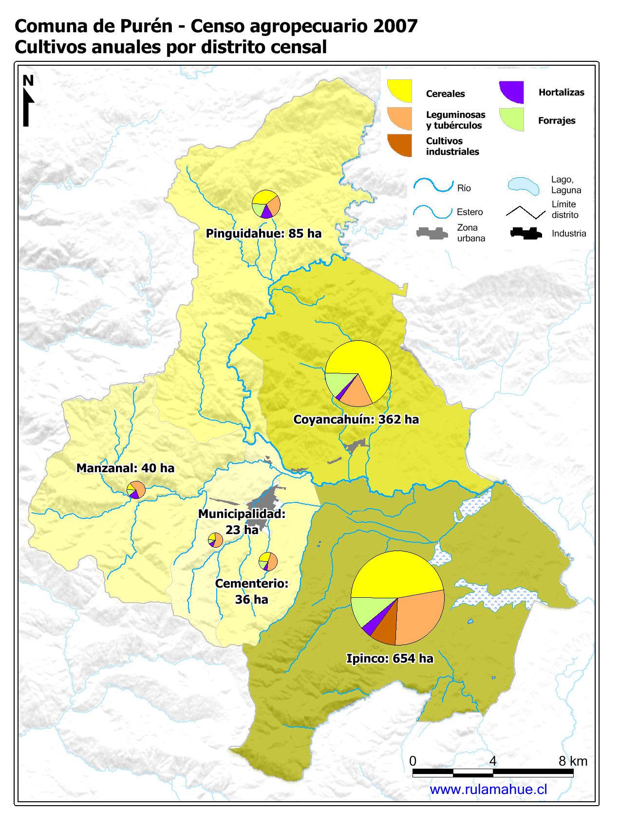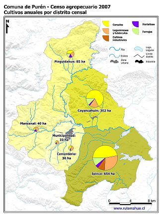 Los diferentes tipos de cultivos anuales por distrito censal de acuerdo información proporcionada por ODEPA.