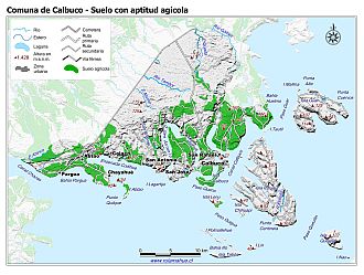 Mapa de la distribución de los suelos con aptitud agrícola según CIREN.