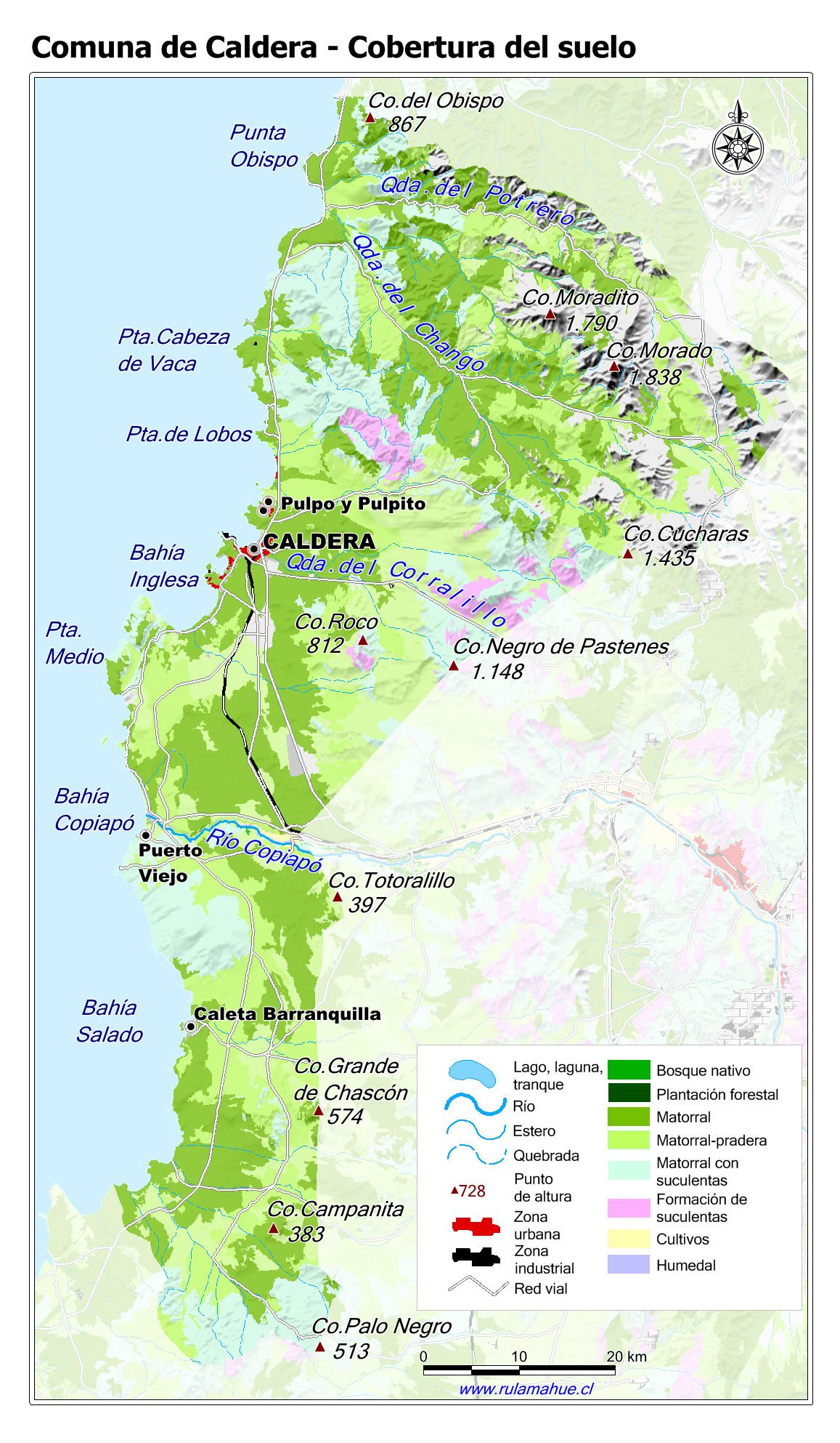 Mapa de la cobertura del suelo por unidad del relieve según el Catastro de Cobertura del Suelo del año 2018 (fuente: sit.conaf.cl)