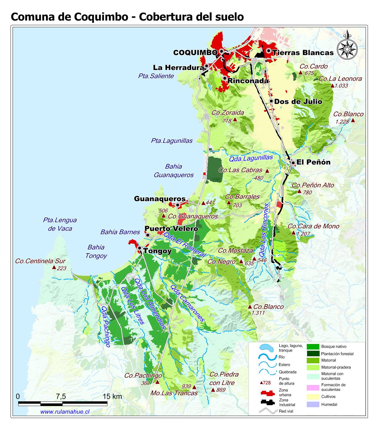 Mapa de la cobertura del suelo por unidad del relieve según el Catastro de Cobertura del Suelo del año 2014 (fuente: sit.conaf.cl)