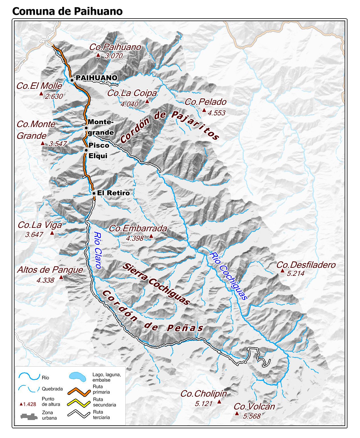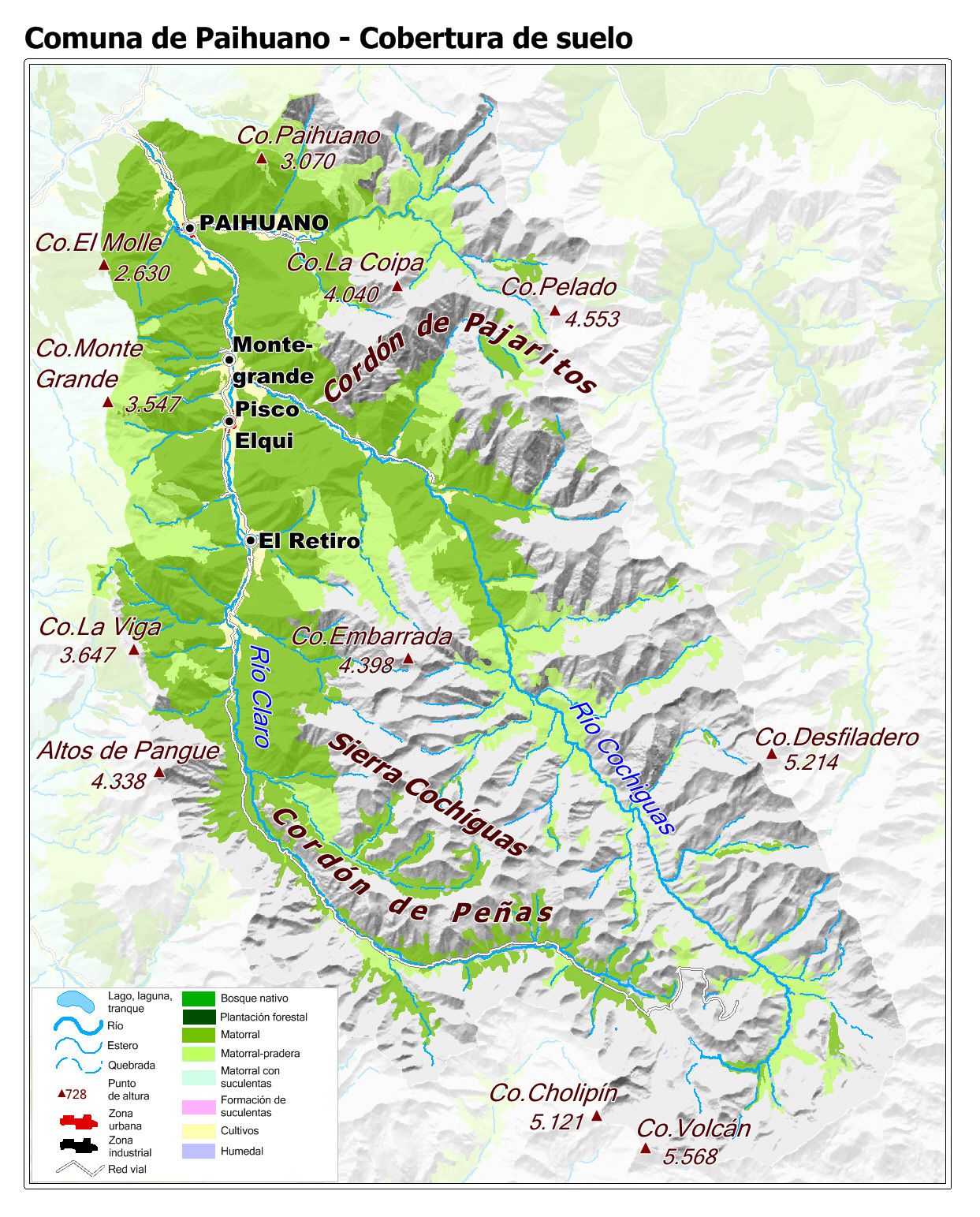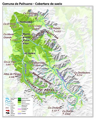 Mapa de la cobertura del suelo por unidad del relieve según el Catastro de Cobertura del Suelo del año 2014 (fuente: sit.conaf.cl)