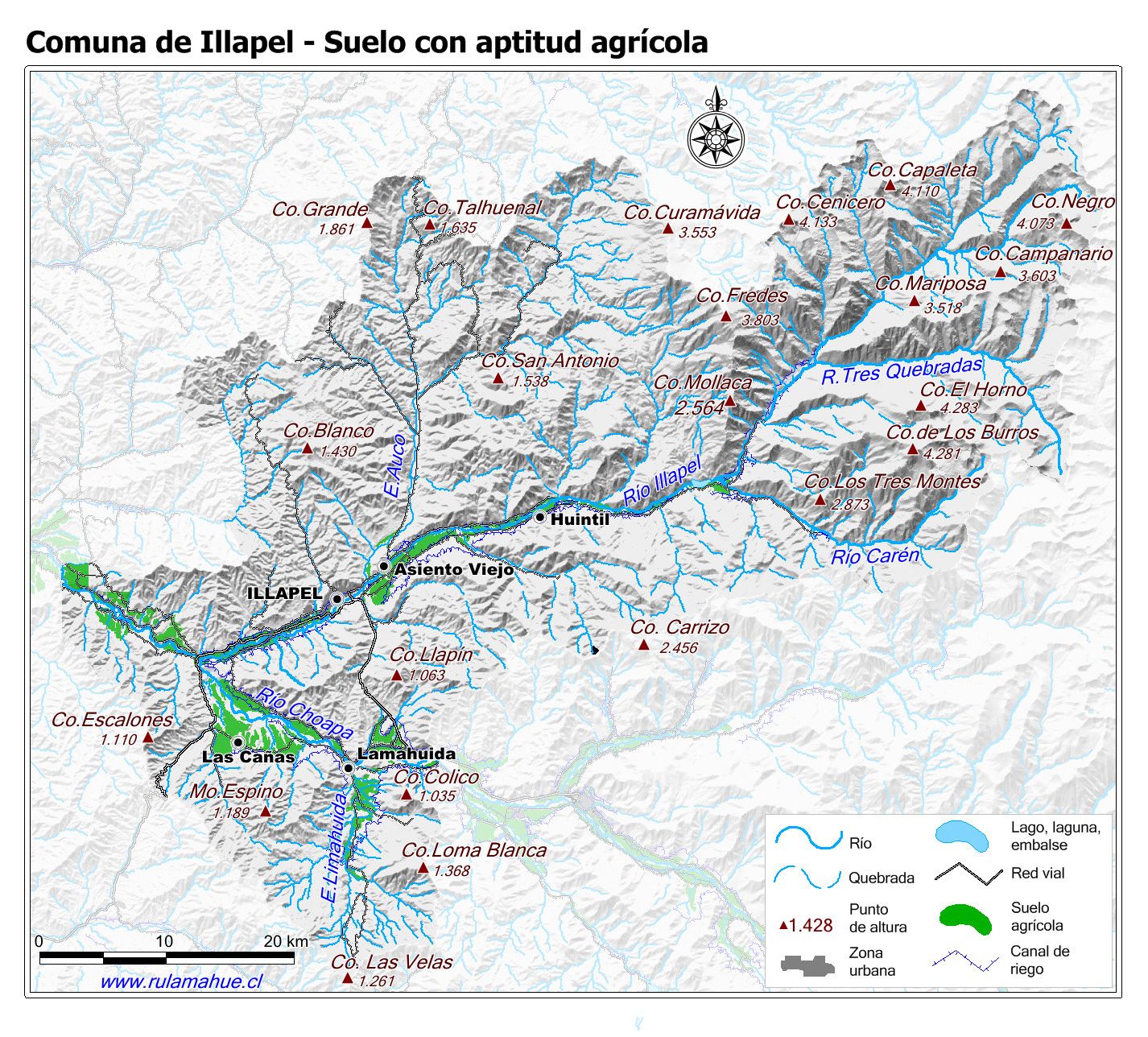 Mapa de la distribución de los suelos con aptitud agrícola según CIREN.