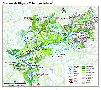Mapa de la cobertura del suelo por unidad del relieve según el Catastro de Cobertura del Suelo del año 2014 (fuente: sit.conaf.cl)
