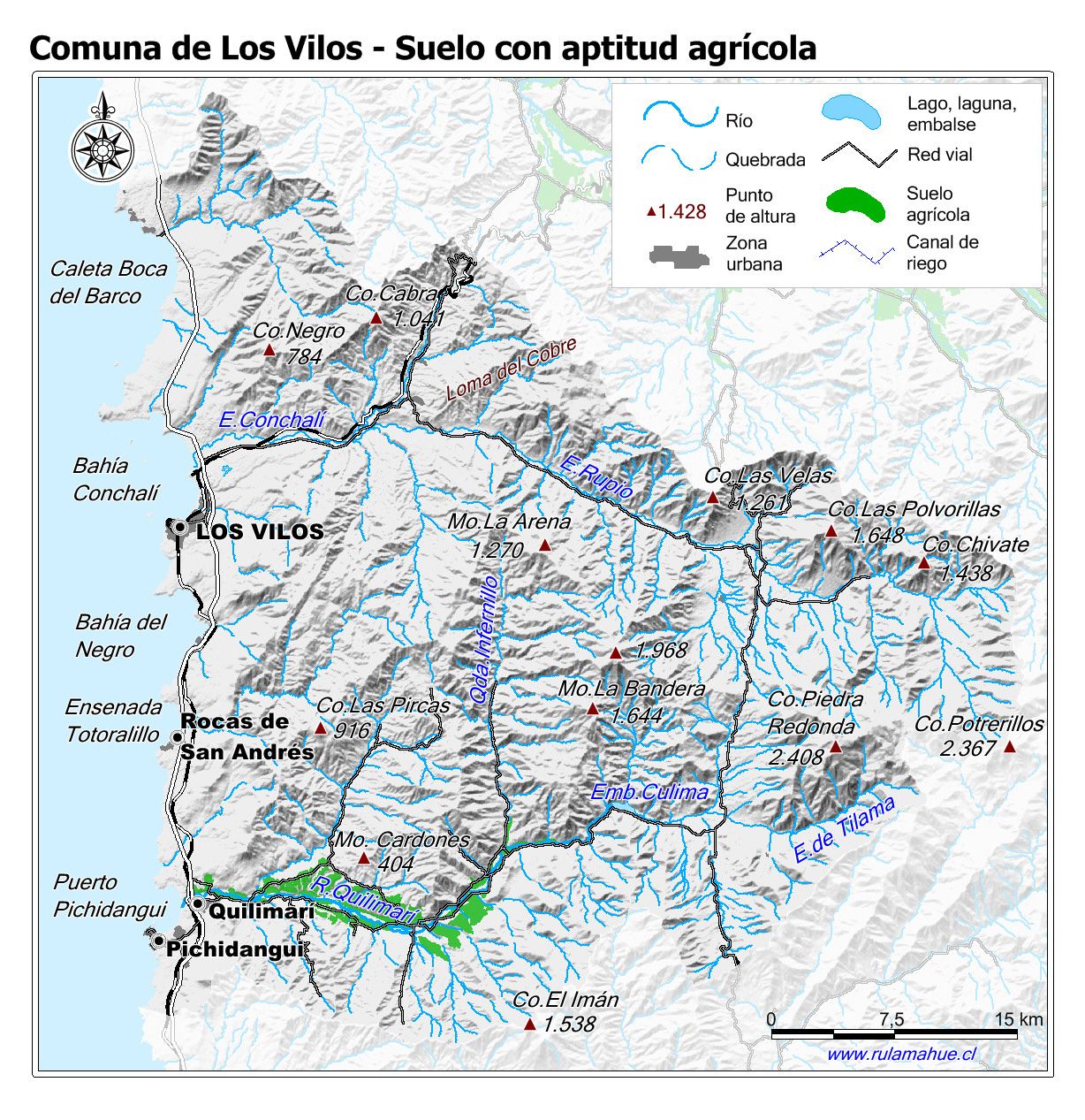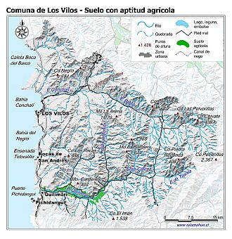 Mapa de la distribución de los suelos con aptitud agrícola según CIREN.