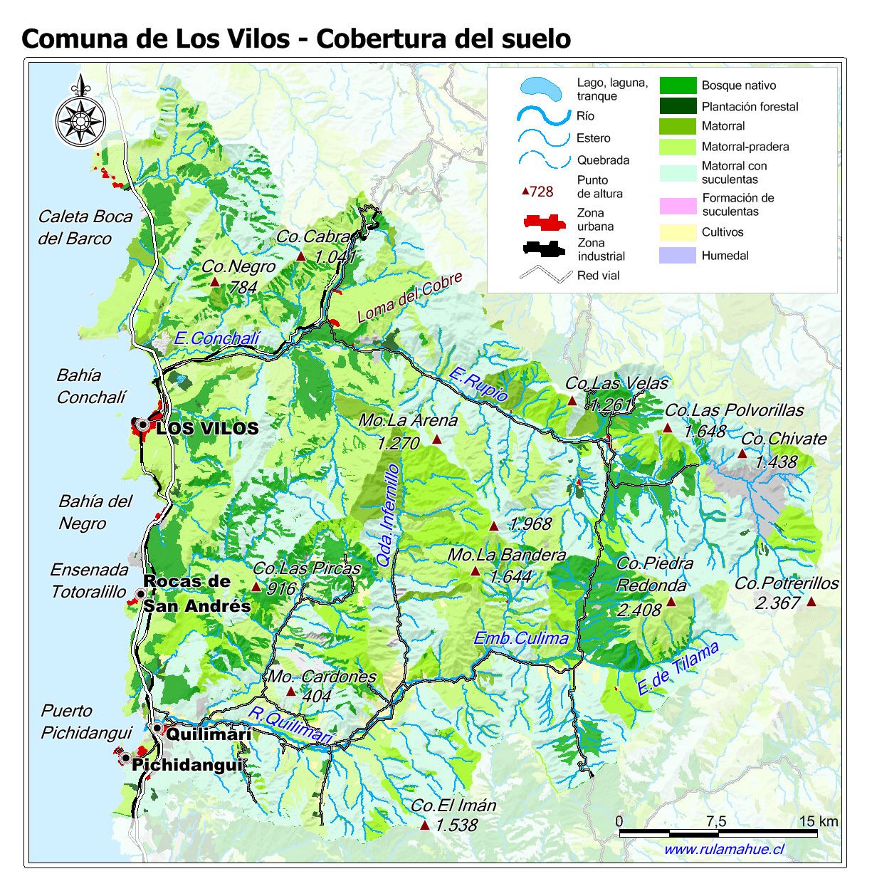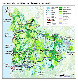 Mapa de la cobertura del suelo por unidad del relieve según el Catastro de Cobertura del Suelo del año 2014 (fuente: sit.conaf.cl)