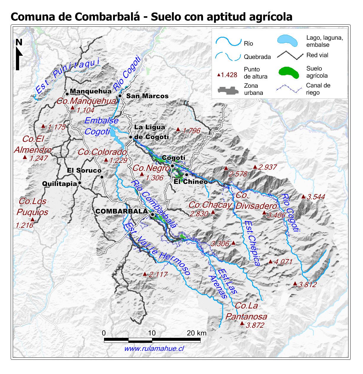 Mapa de la distribución de los suelos con aptitud agrícola según CIREN.