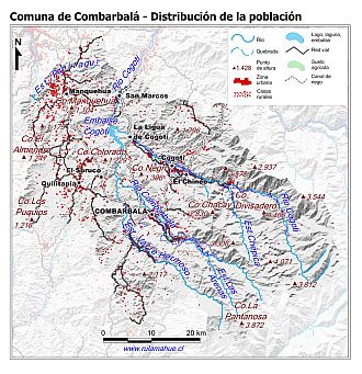 Mapa que muestra la ubicación y expansión de las zonas urbanas y la distribución de las casas rurales.