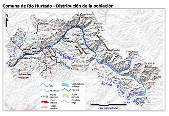 Mapa que muestra la ubicación y expansión de las zonas urbanas y la distribución de las casas rurales.