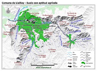 Mapa de la distribución de los suelos con aptitud agrícola según CIREN.