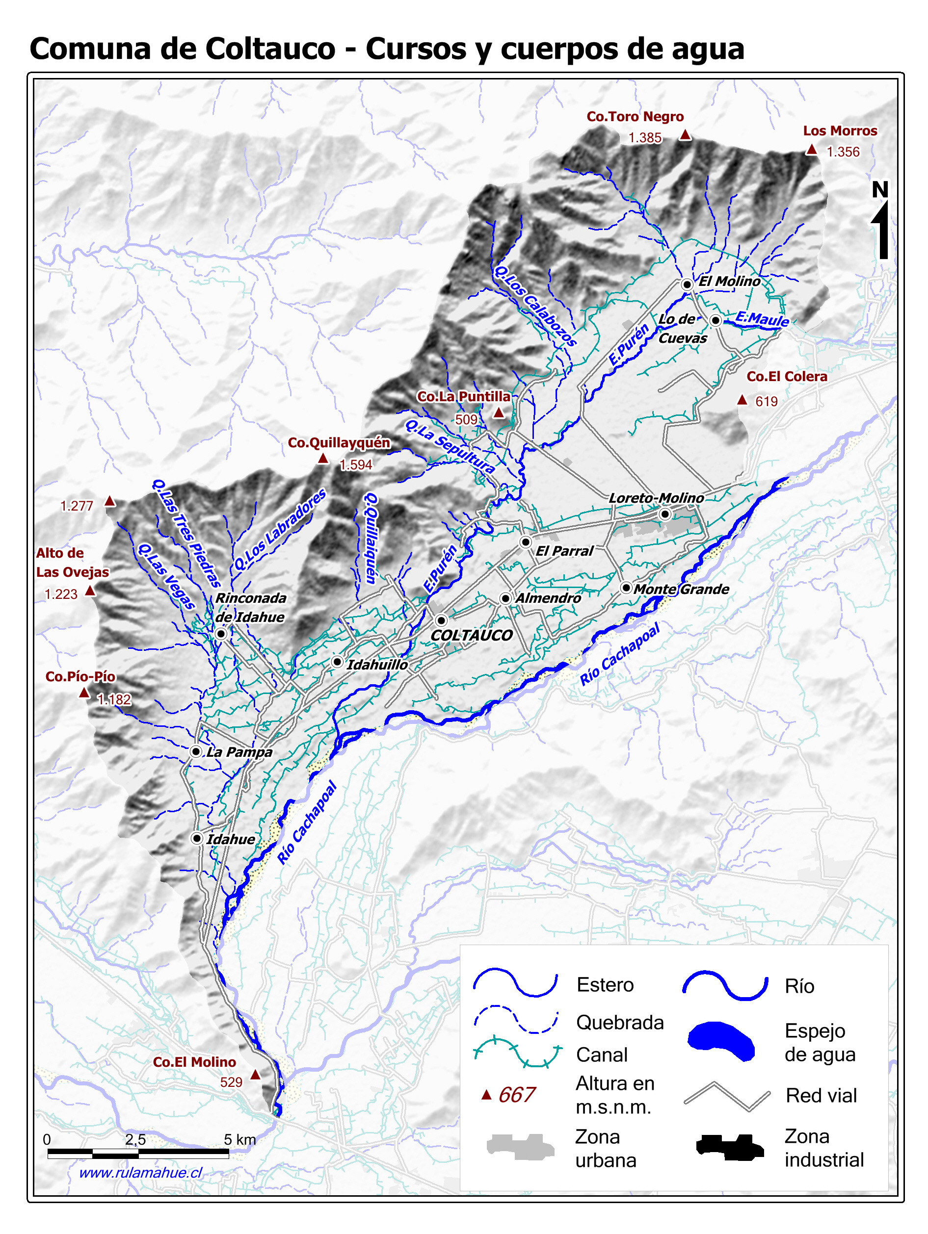 Mapa de los cursos y cuerpos de agua.