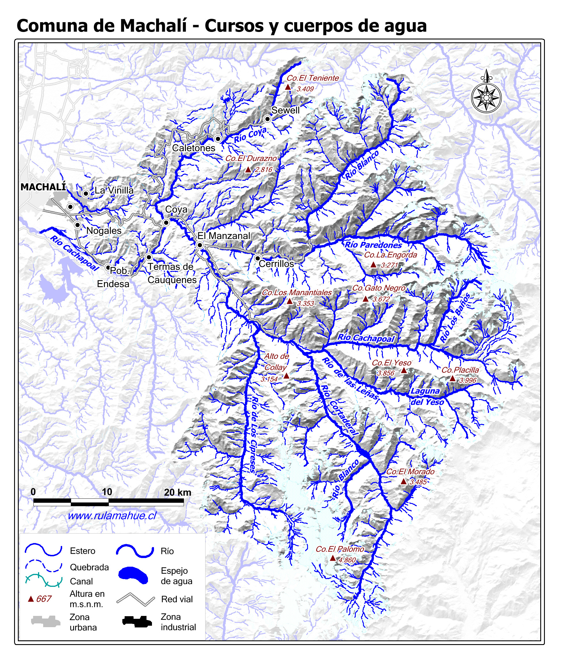 Mapa de los cursos y cuerpos de agua.