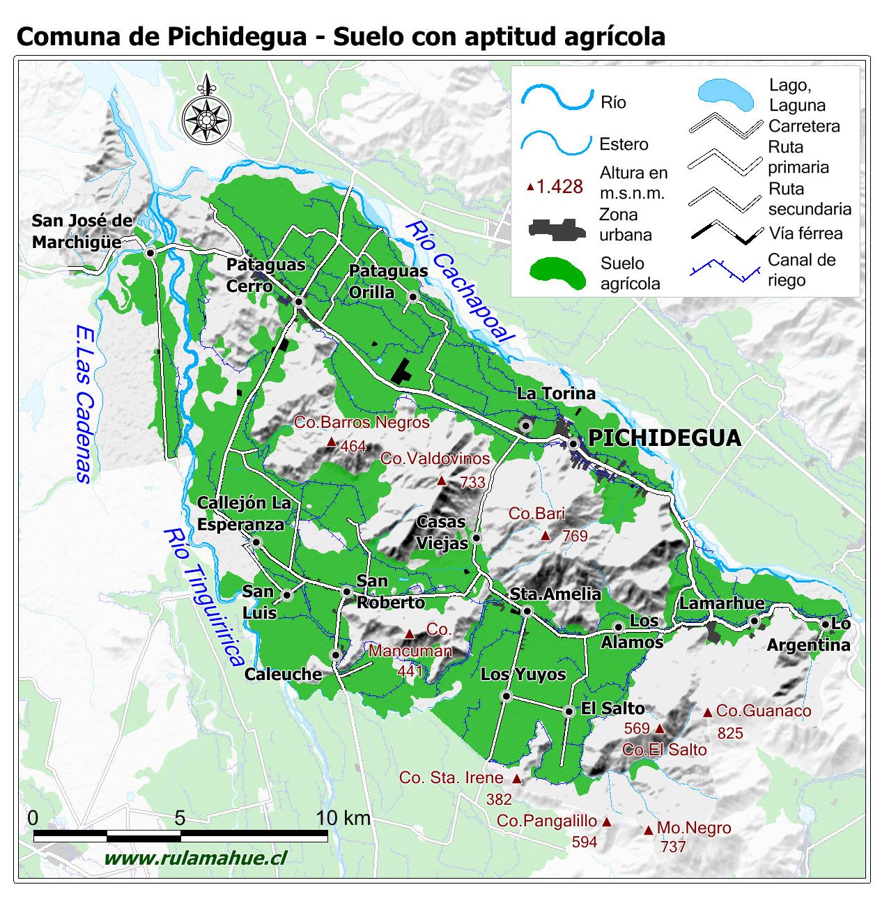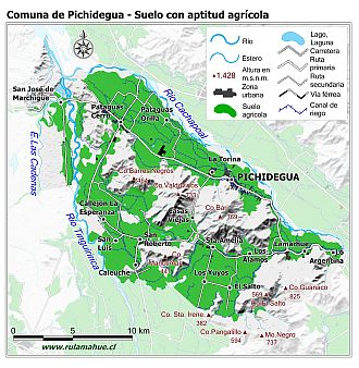 Mapa de la distribución de los suelos con aptitud agrícola según CIREN.