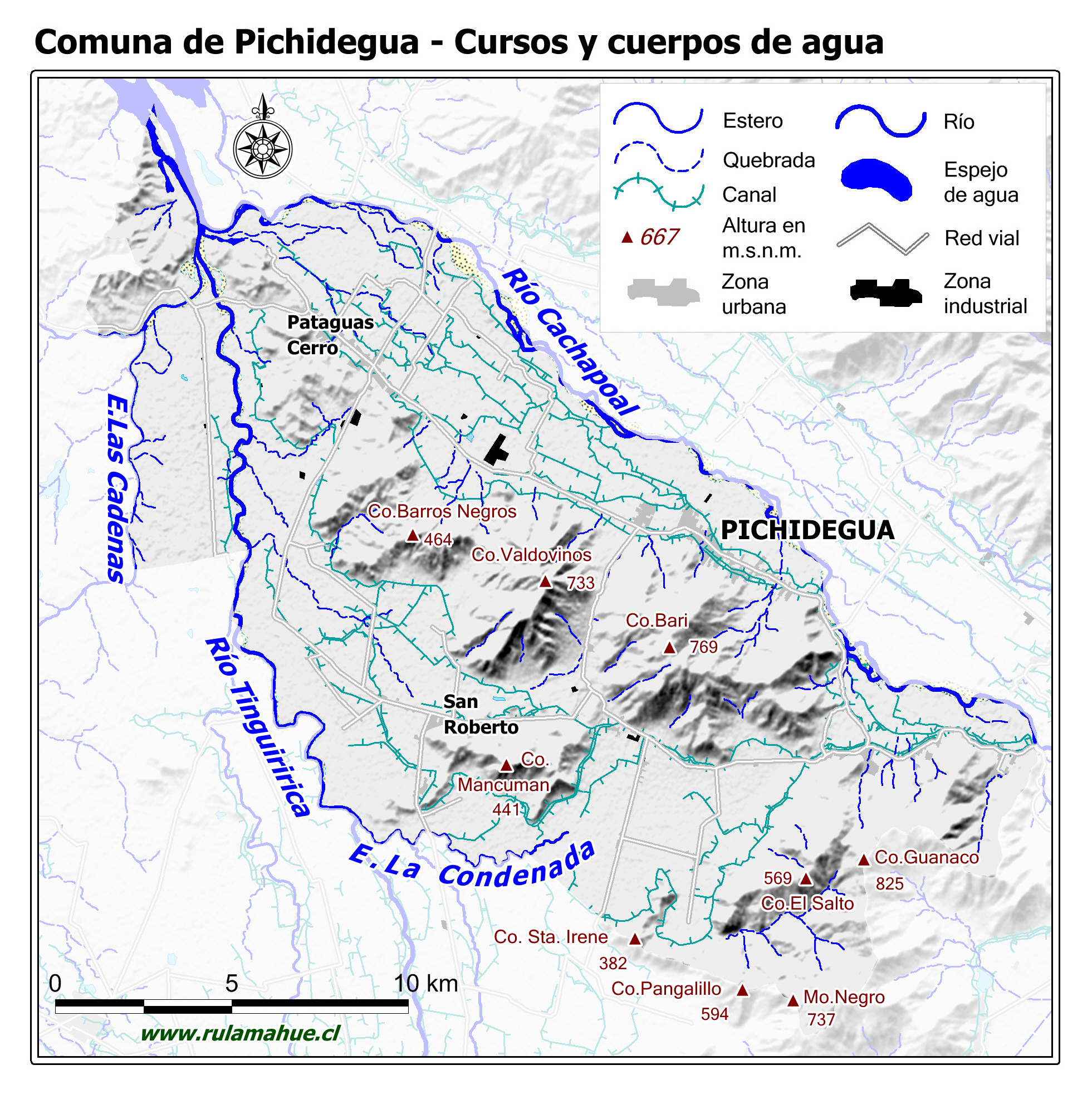Mapa de los cursos y cuerpos de agua.
