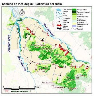 Mapa de la cobertura del suelo por unidad del relieve según el Catastro de Cobertura del Suelo del año 2016 (fuente: sit.conaf.cl)