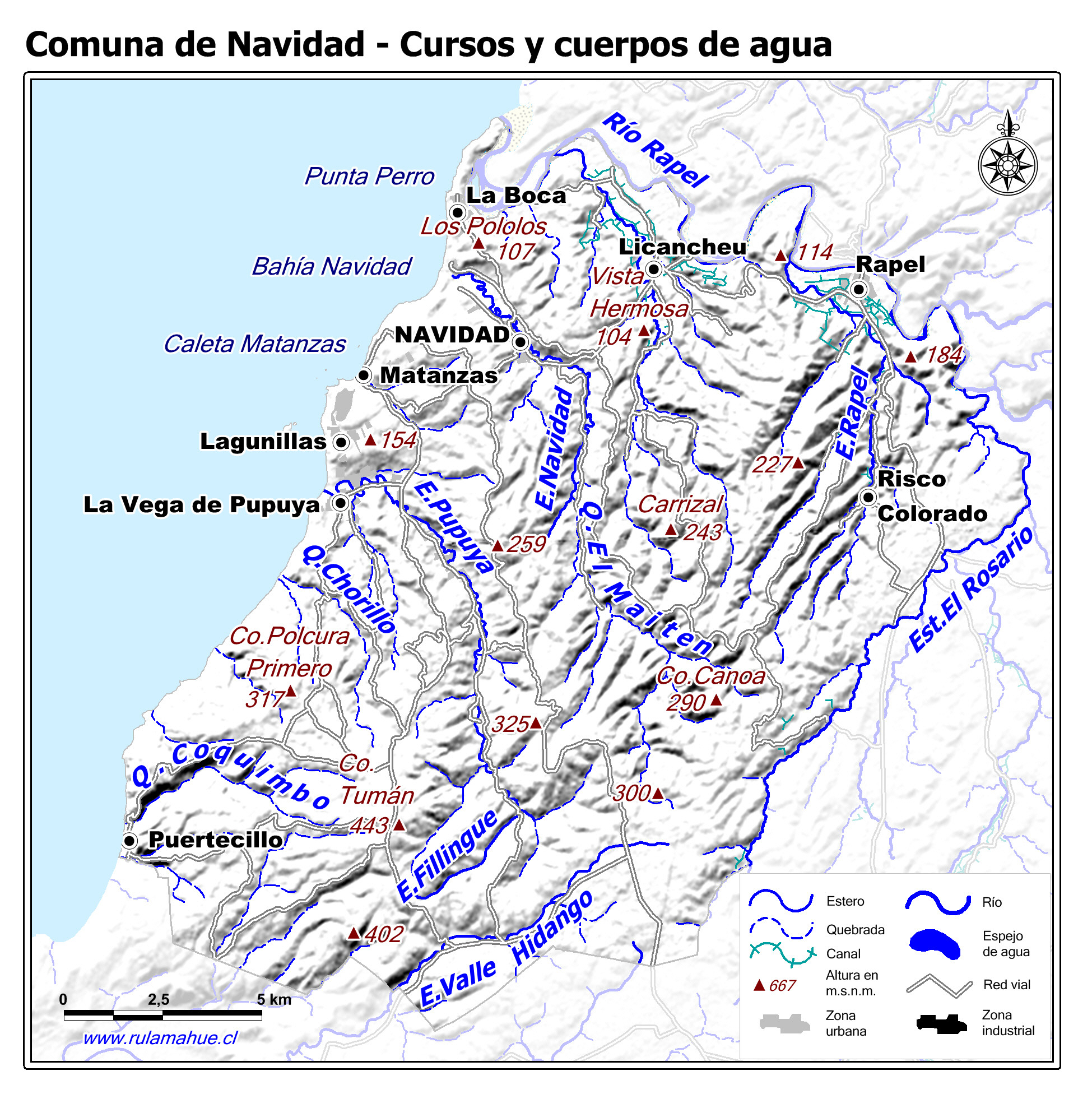 Mapa de los cursos y cuerpos de agua.