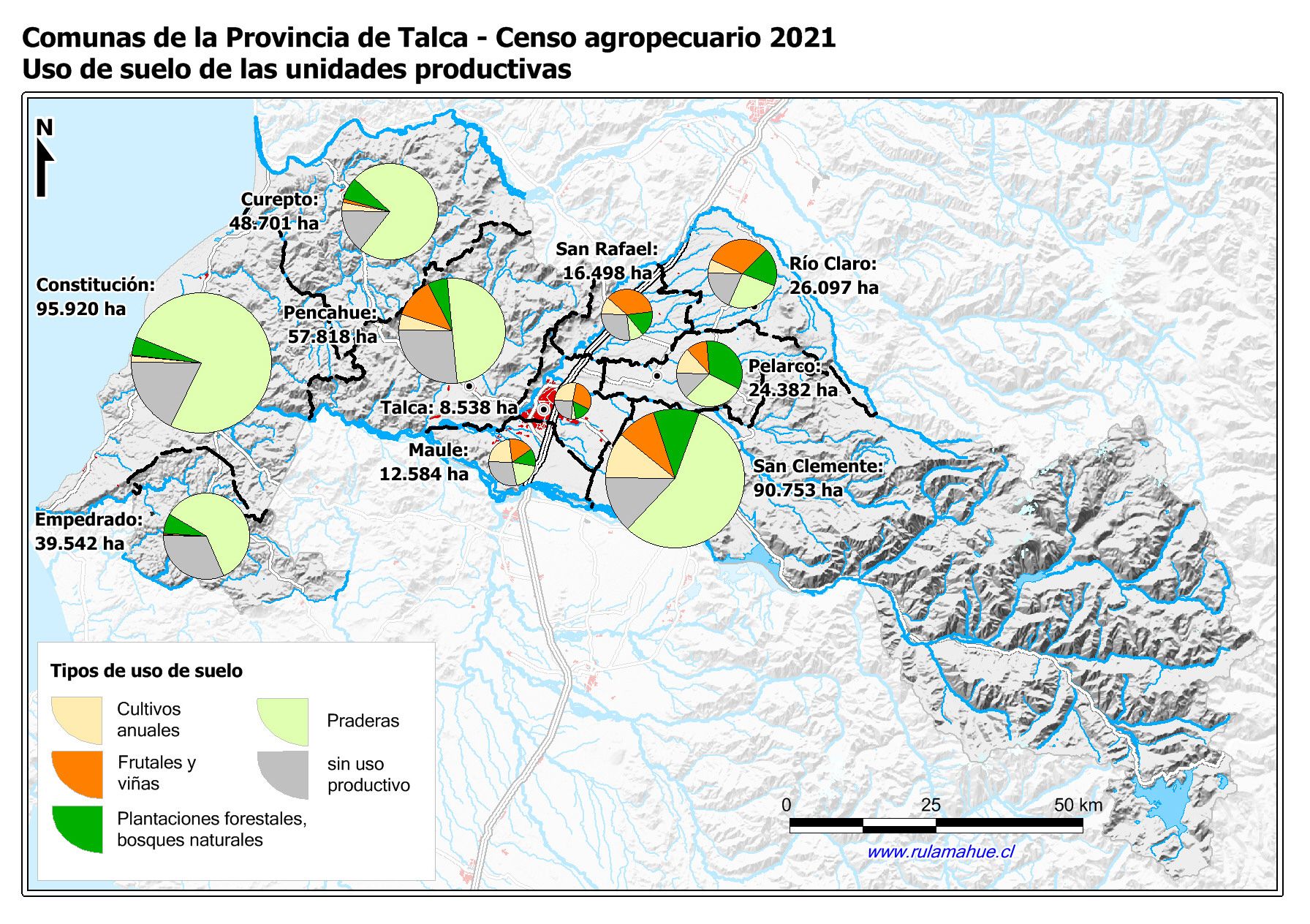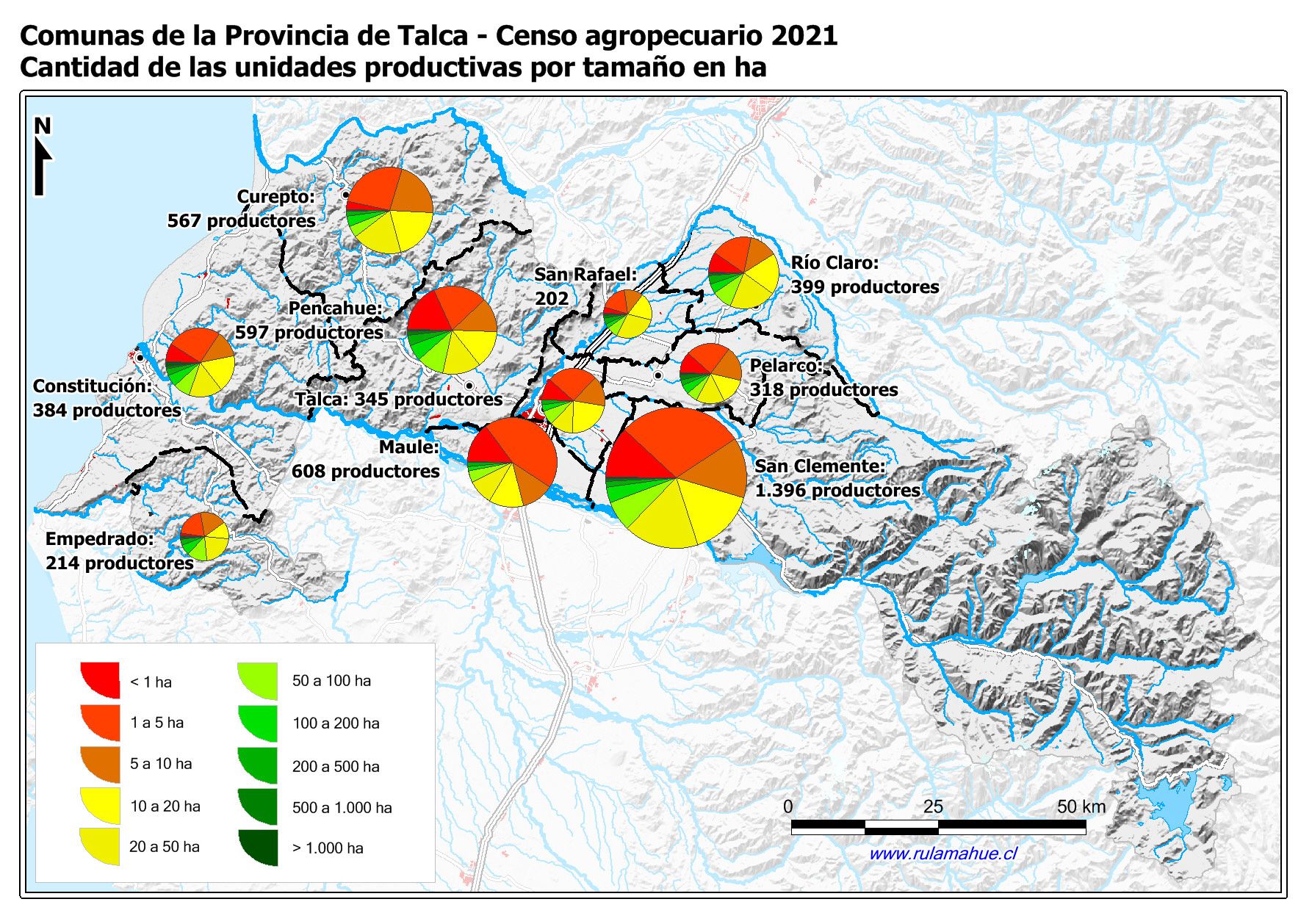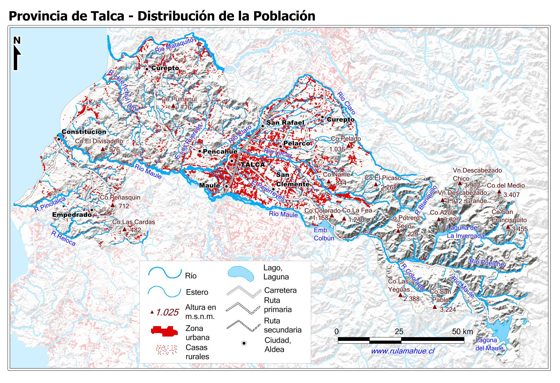 Mapa que muestra la ubicación de las zonas urbanas y la distribución de las casas rurales.