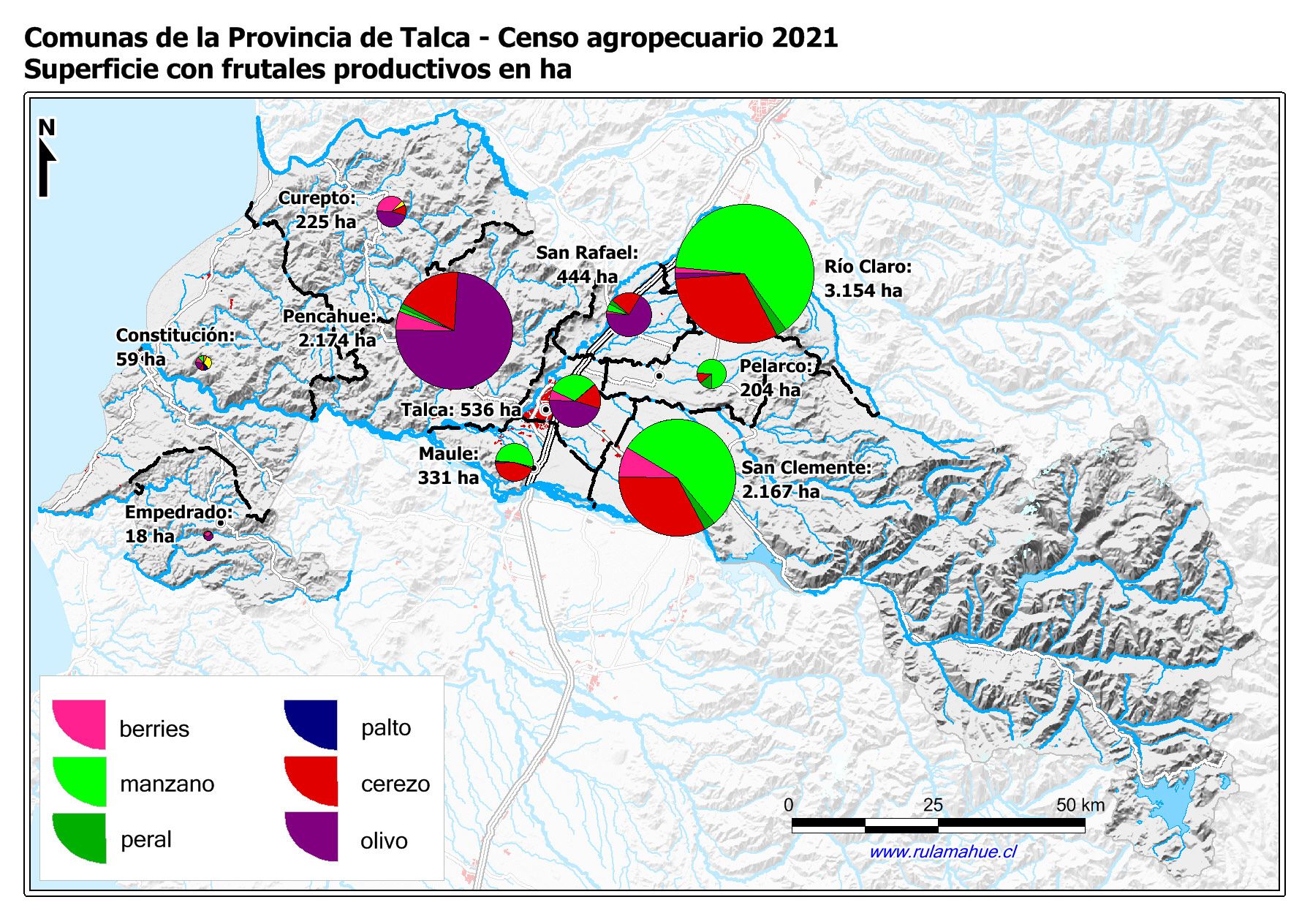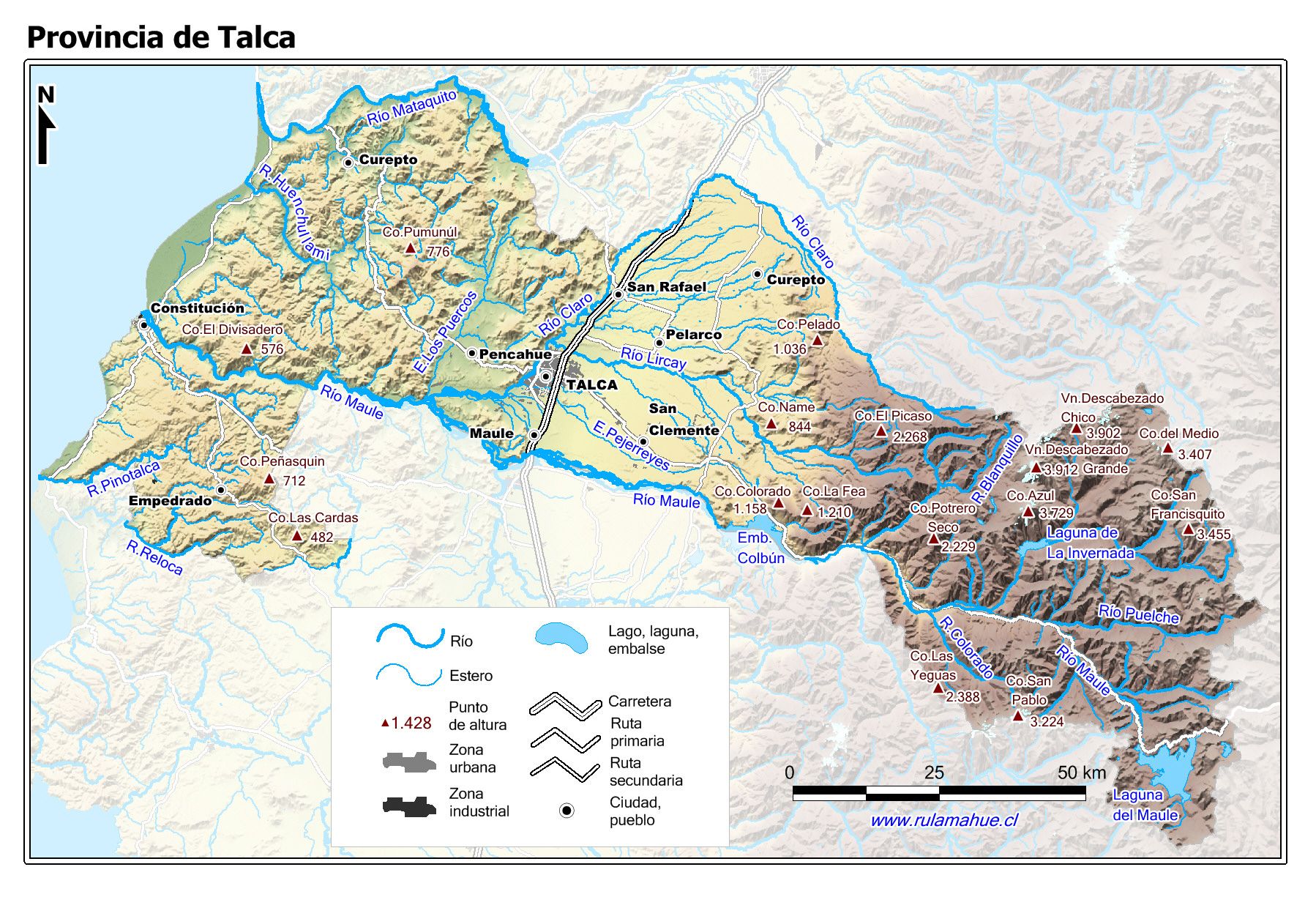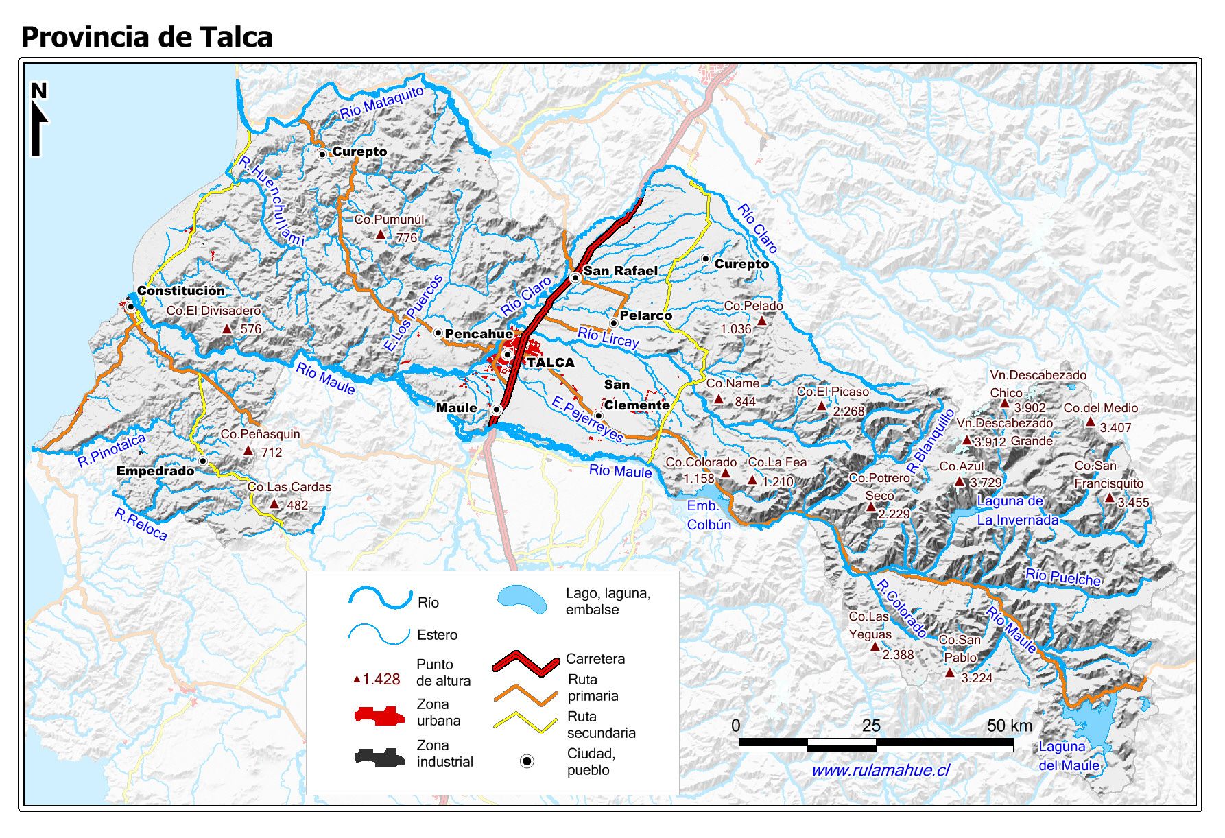 Mapa que muestra la ubicación de las zonas urbanas y la distribución de las casas rurales.