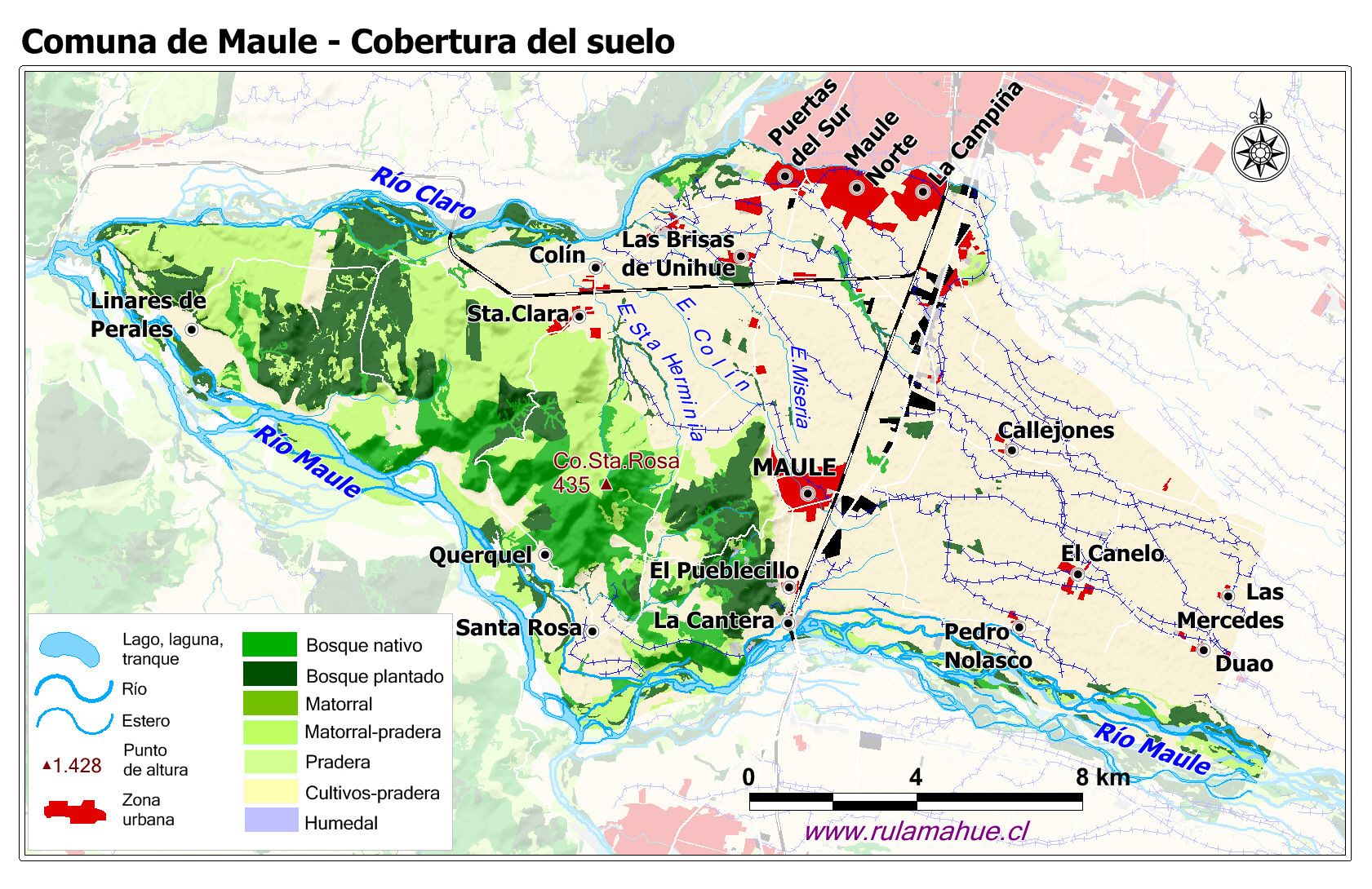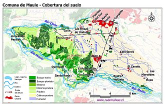 Mapa de la cobertura del suelo por unidad del relieve según el Catastro de Cobertura del Suelo del año 2015 (fuente: sit.conaf.cl)