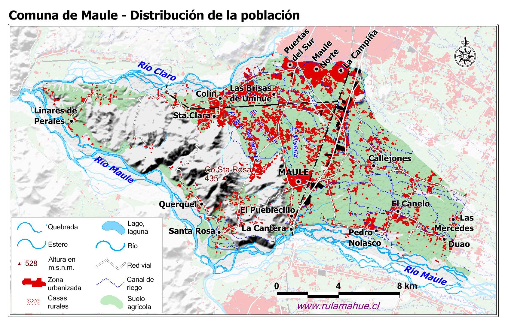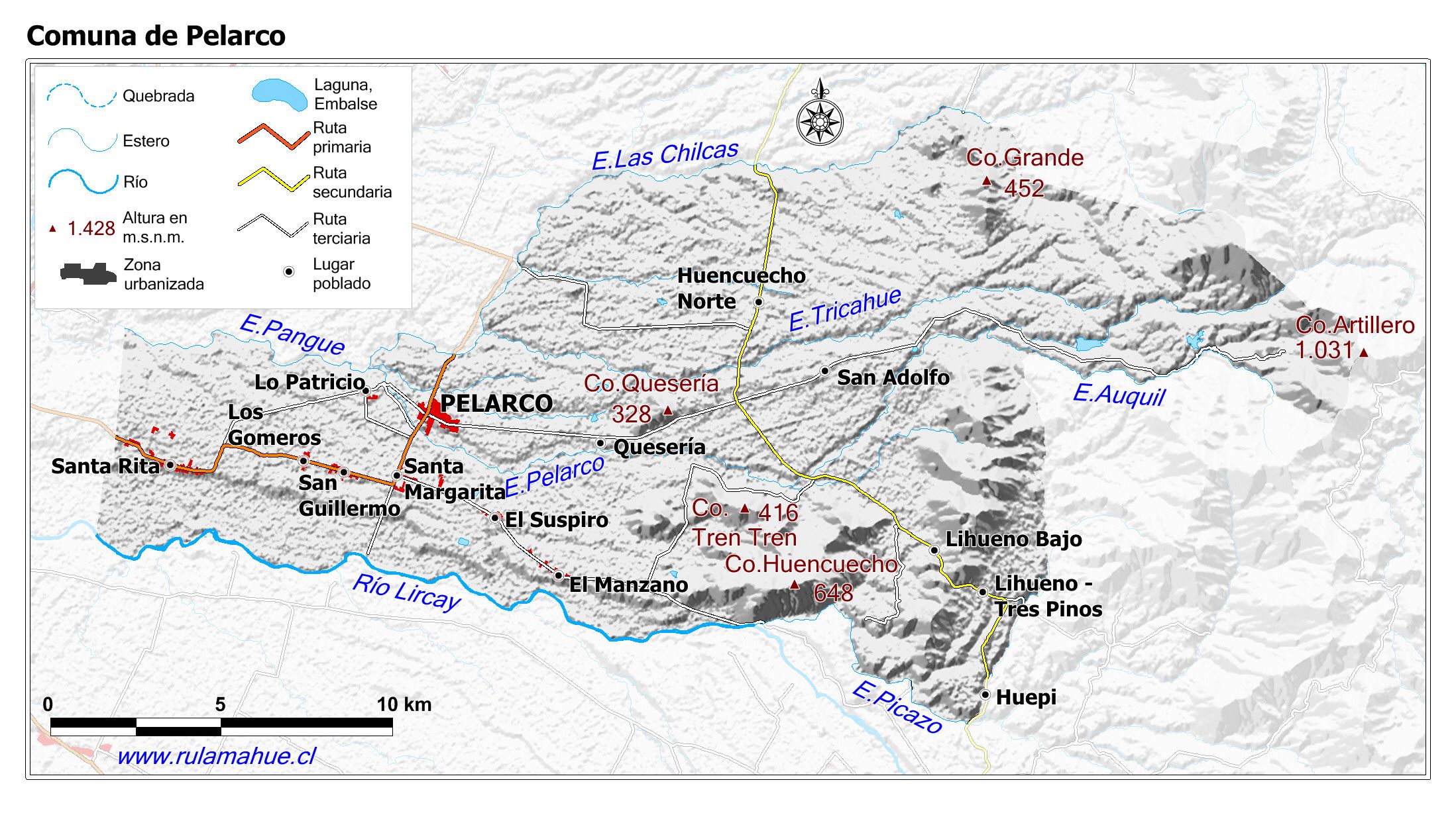 Mapa base de la Comuna con fondo coloreado.