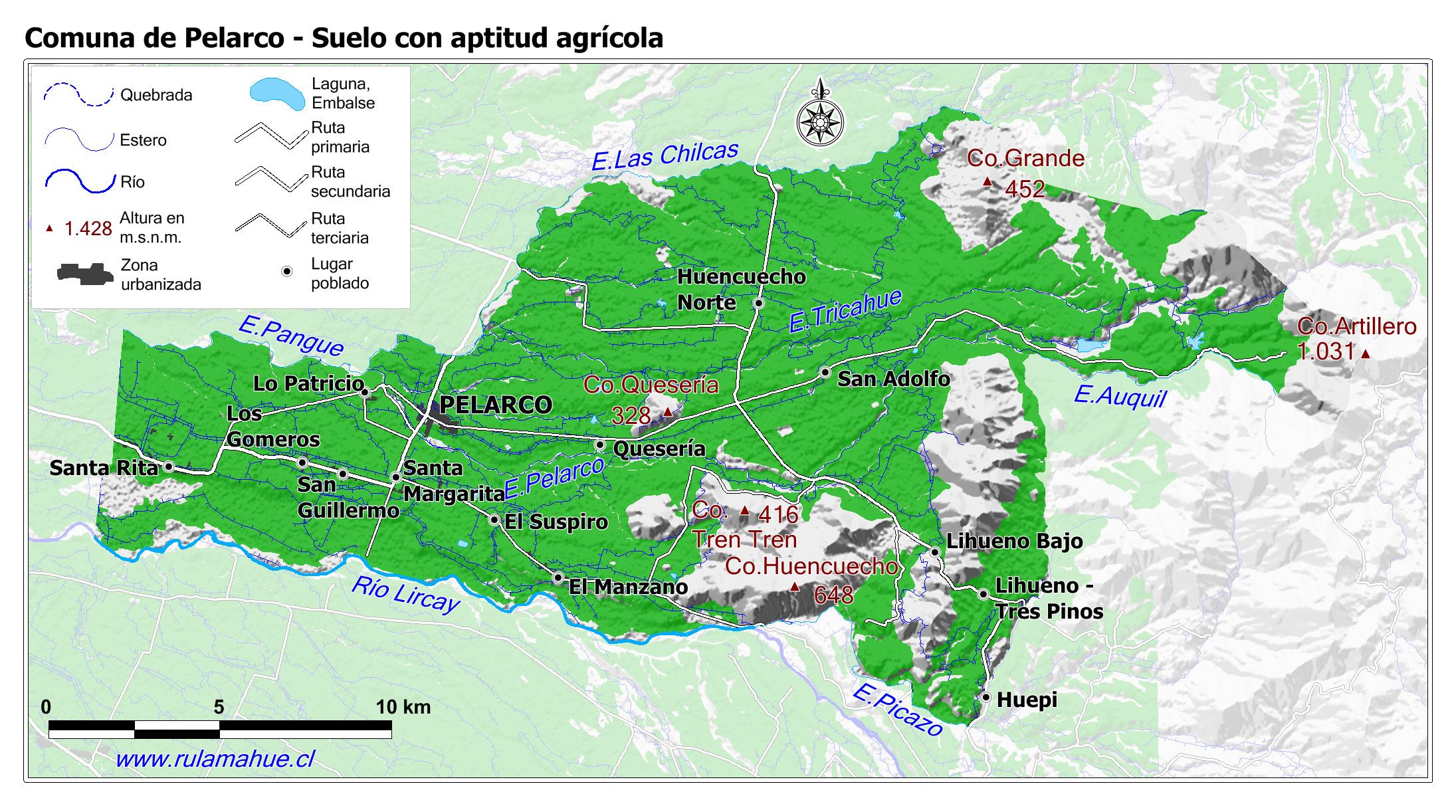 Mapa de la distribución de los suelos con aptitud agrícola según la información proporcionada por CIREN.
