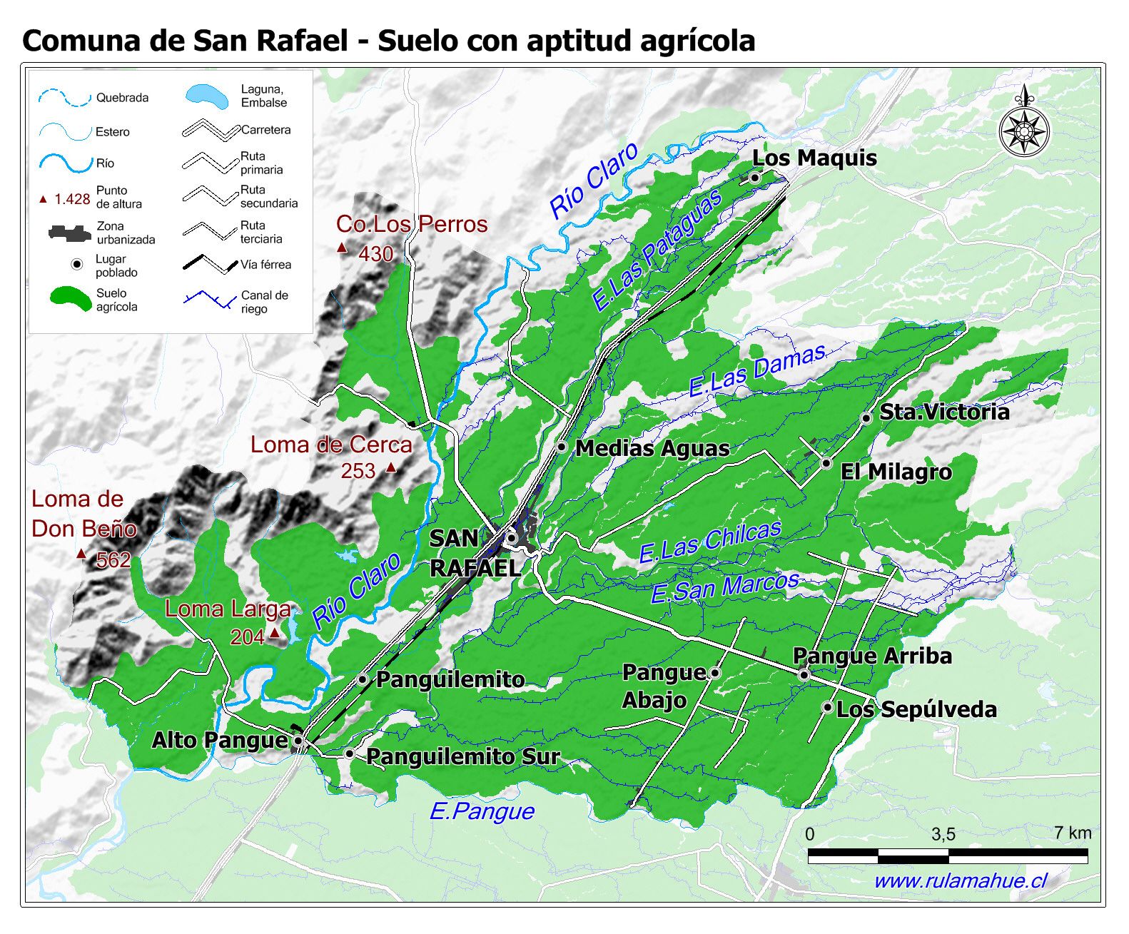 Mapa de la distribución de los suelos con aptitud agrícola según la información proporcionada por CIREN.