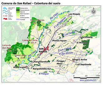 Mapa de la cobertura del suelo por unidad del relieve según el Catastro de Cobertura del Suelo del año 2015 (fuente: sit.conaf.cl)