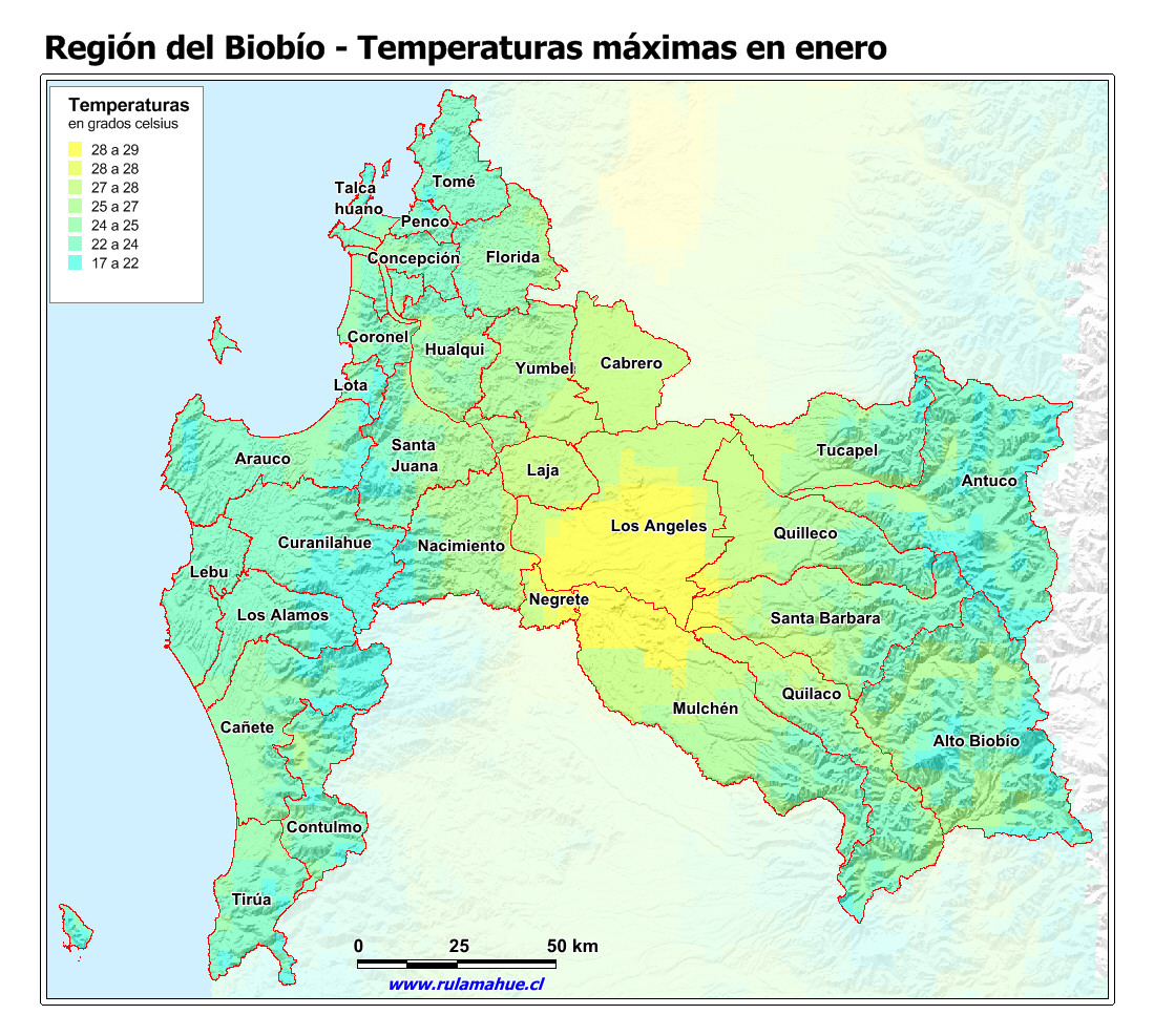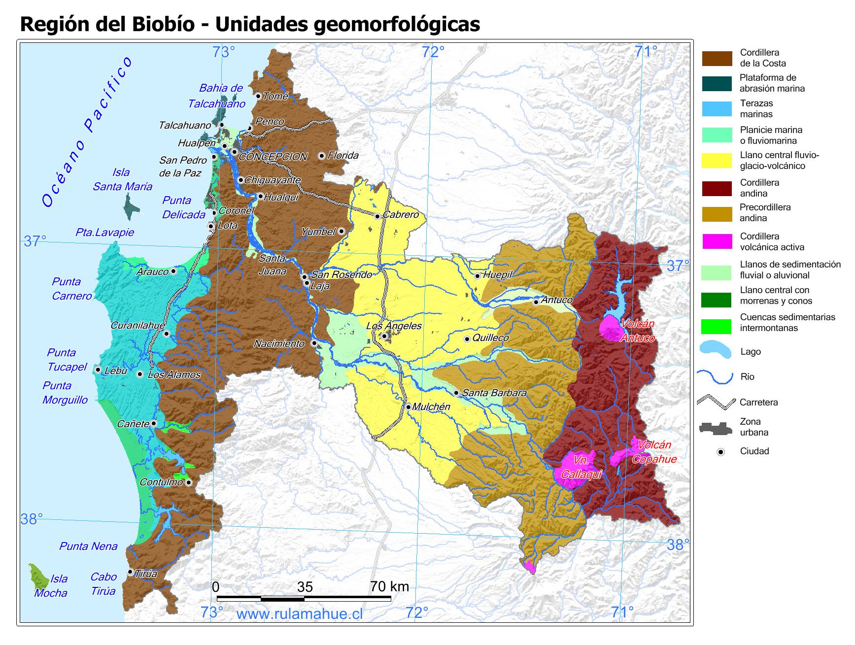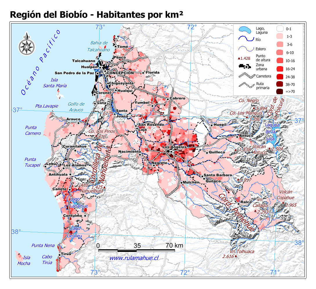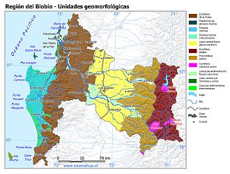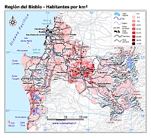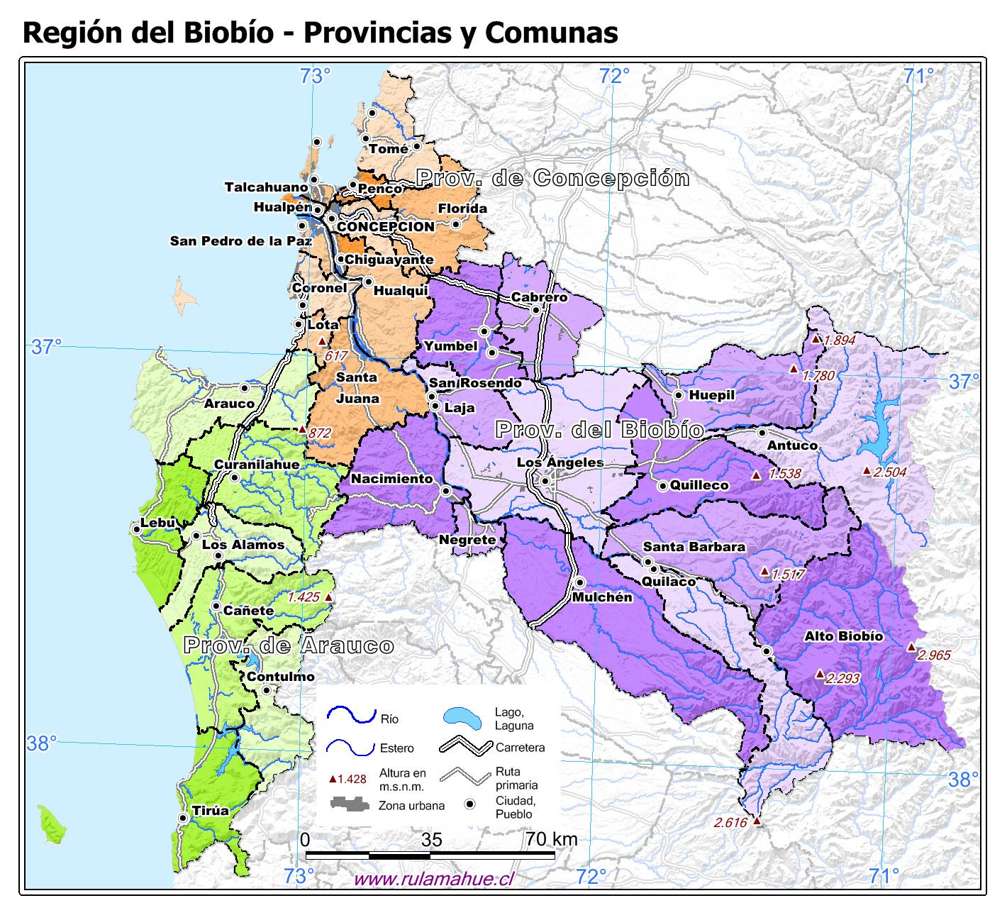 Mapa base de la Región con fondo de niveles de alturas coloreadas.