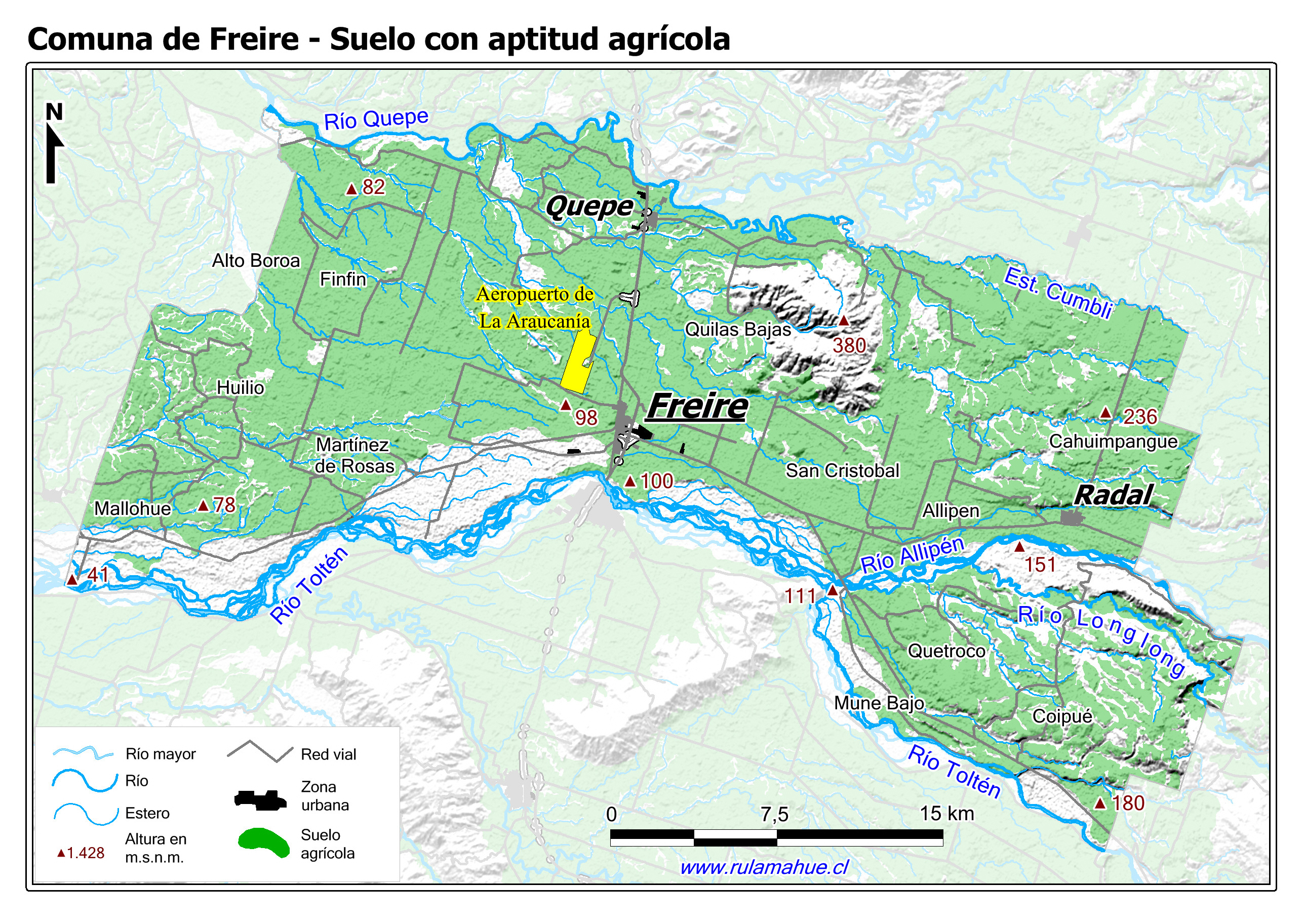 Mapa de la distribución de los suelos con aptitud agrícola según CIREN.