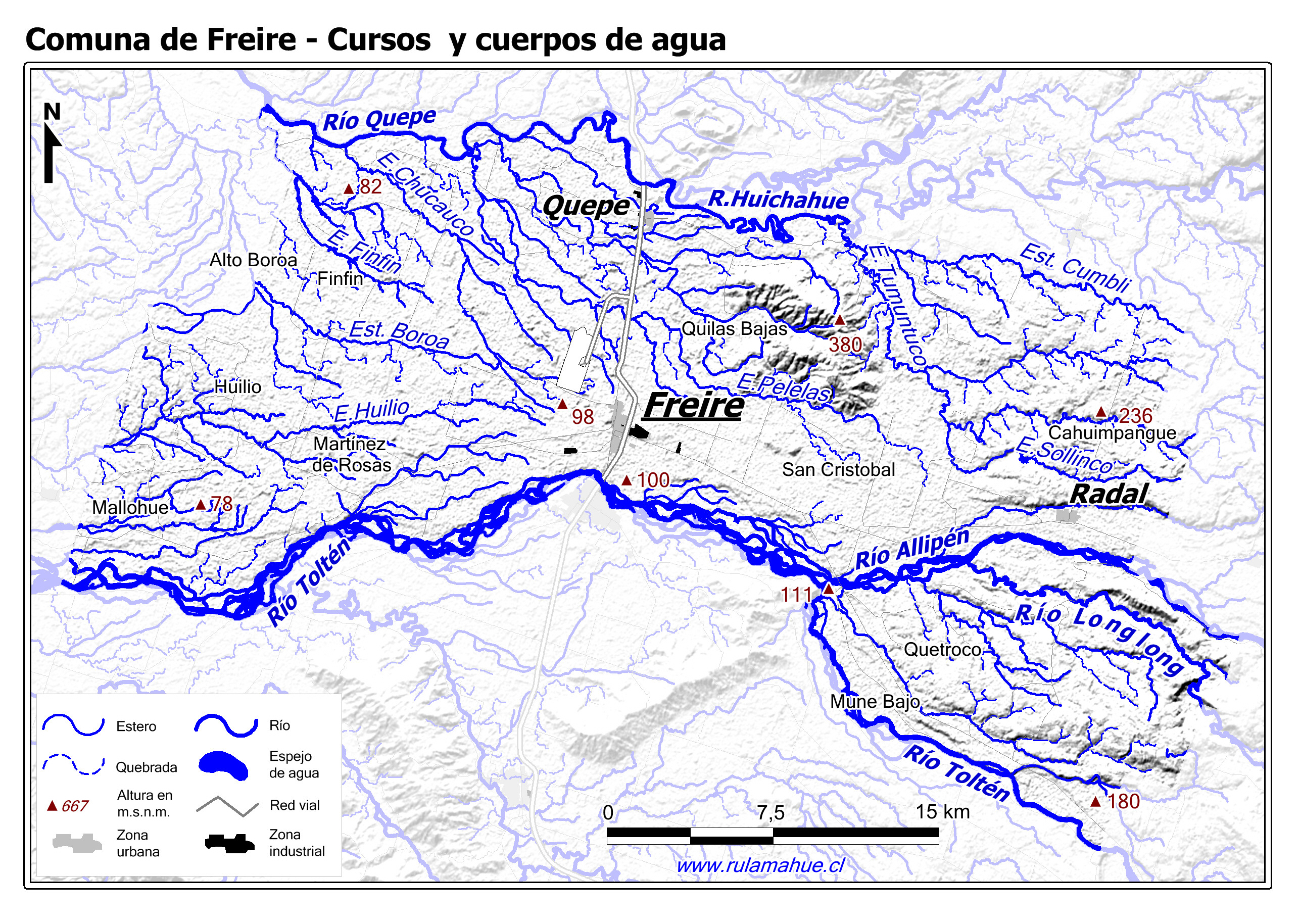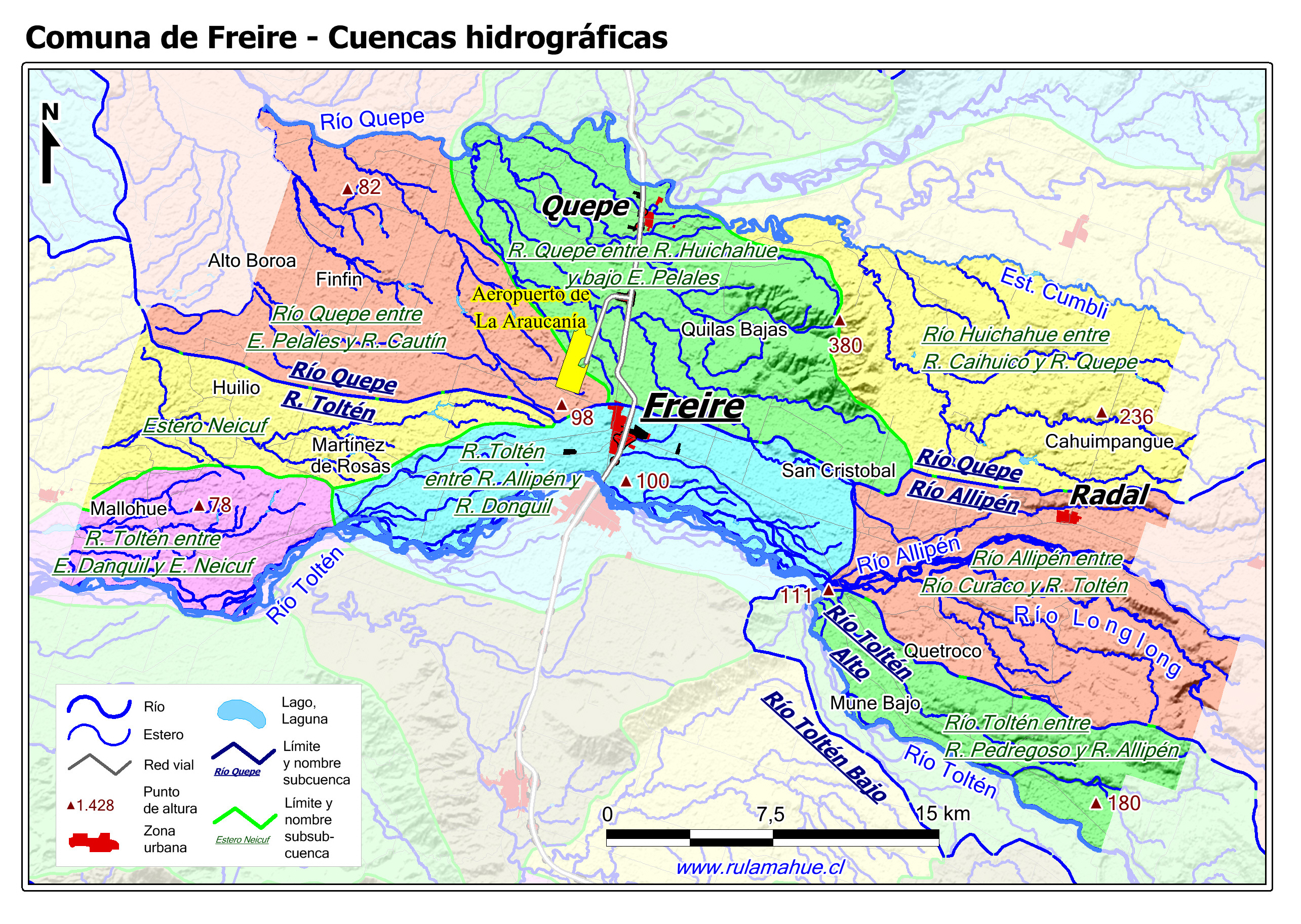 Mapa de las cuencas hidrográficas según información de la Dirección General de Aguas del Ministerio de Obras Públicas.