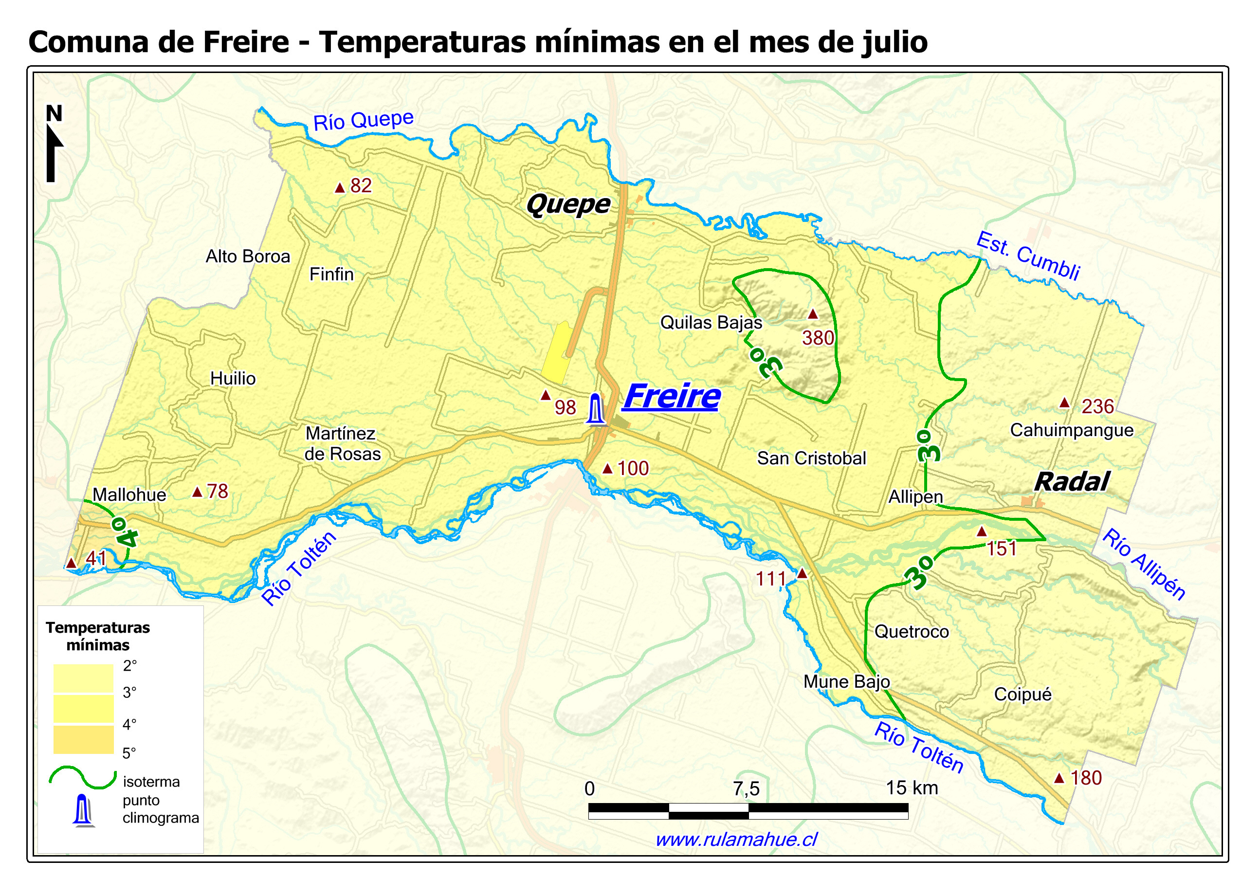 Climograma de Freire en la comuna de Freire con datos del sitio web Worldclim.