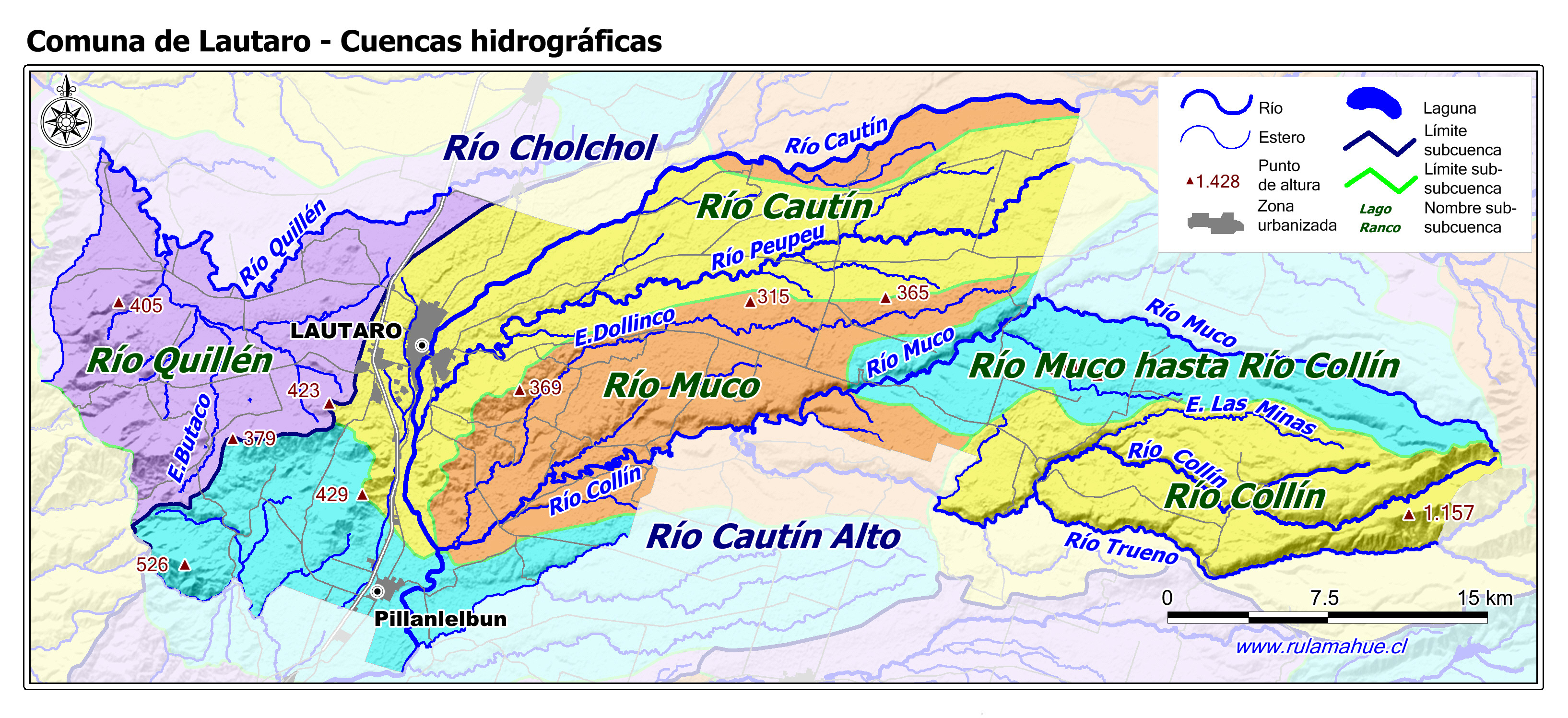 Mapa de las cuencas hidrográficas según información de la Dirección General de Aguas del Ministerio de Obras Públicas.
