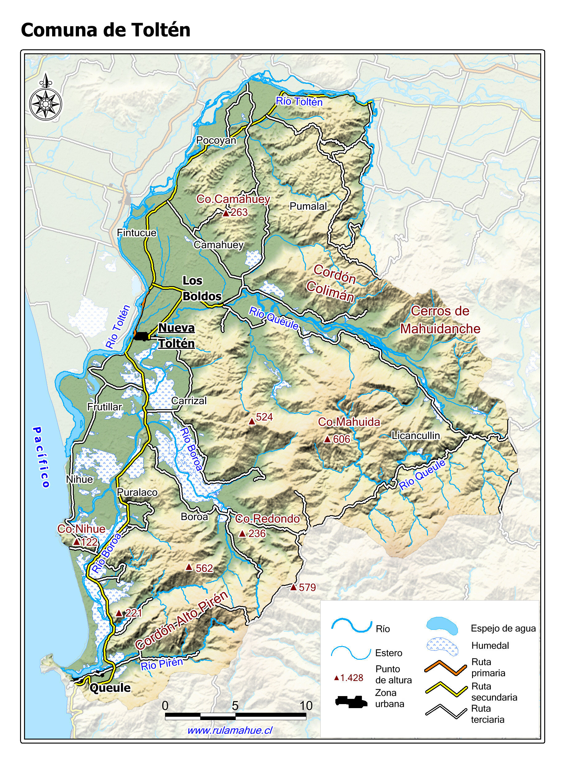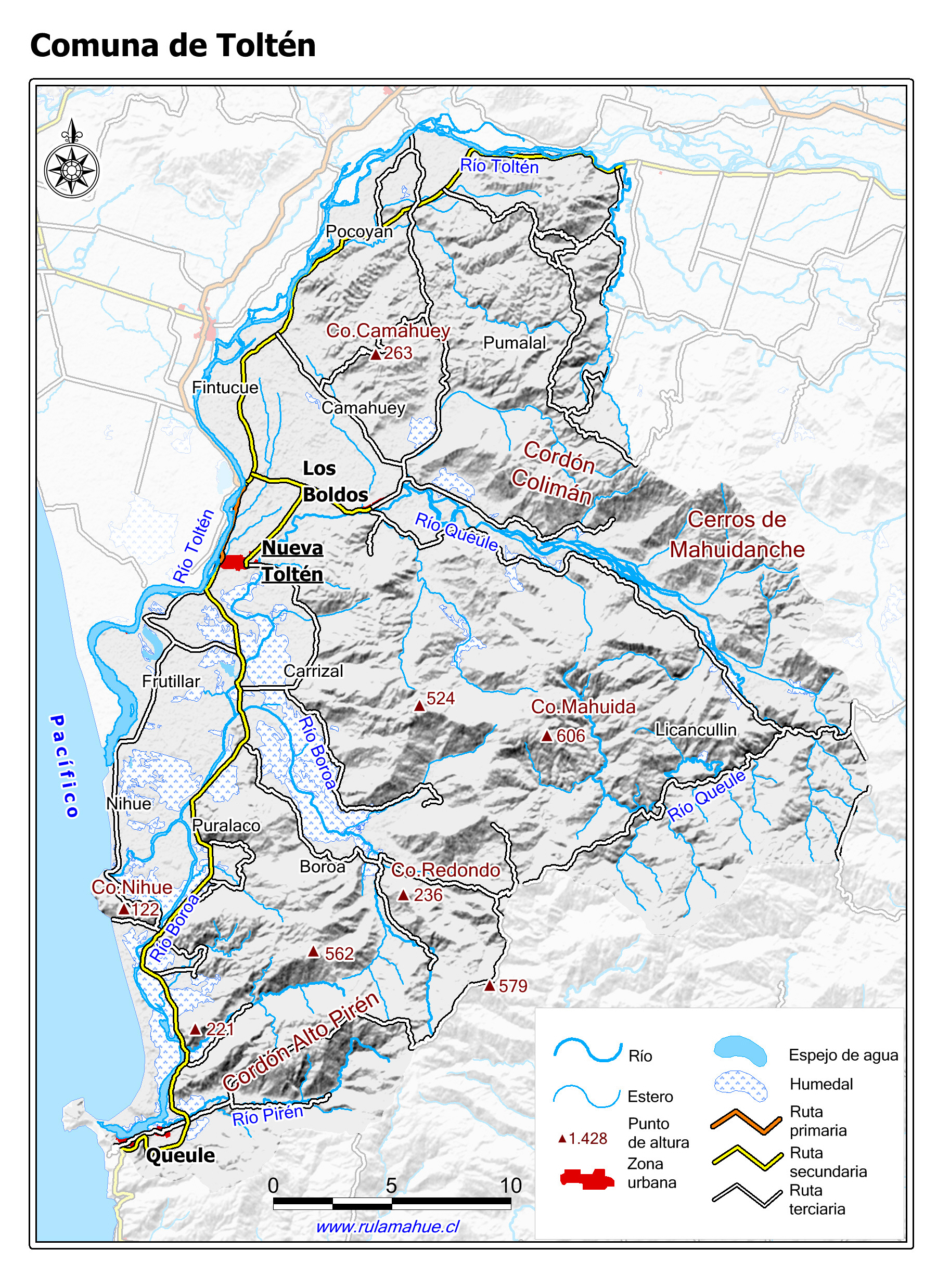 Mapa que muestra la ubicación y expansión de las zonas urbanas y la distribución de las casas rurales.
