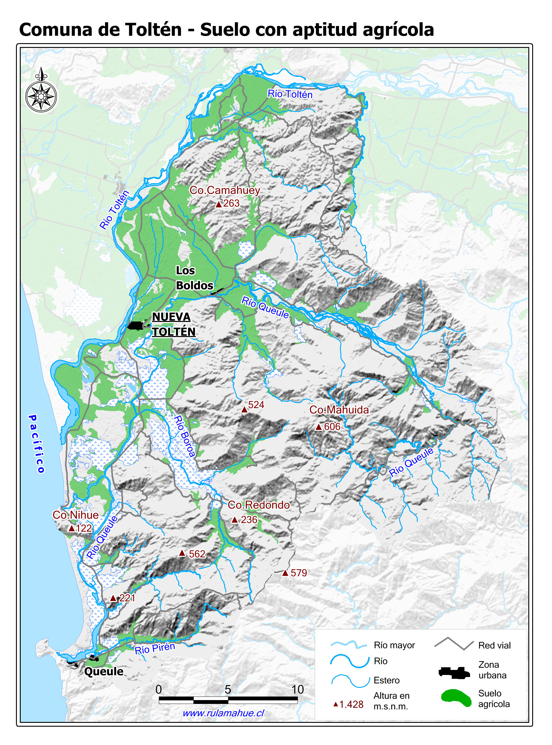Mapa de la distribución de los suelos con aptitud agrícola según CIREN.