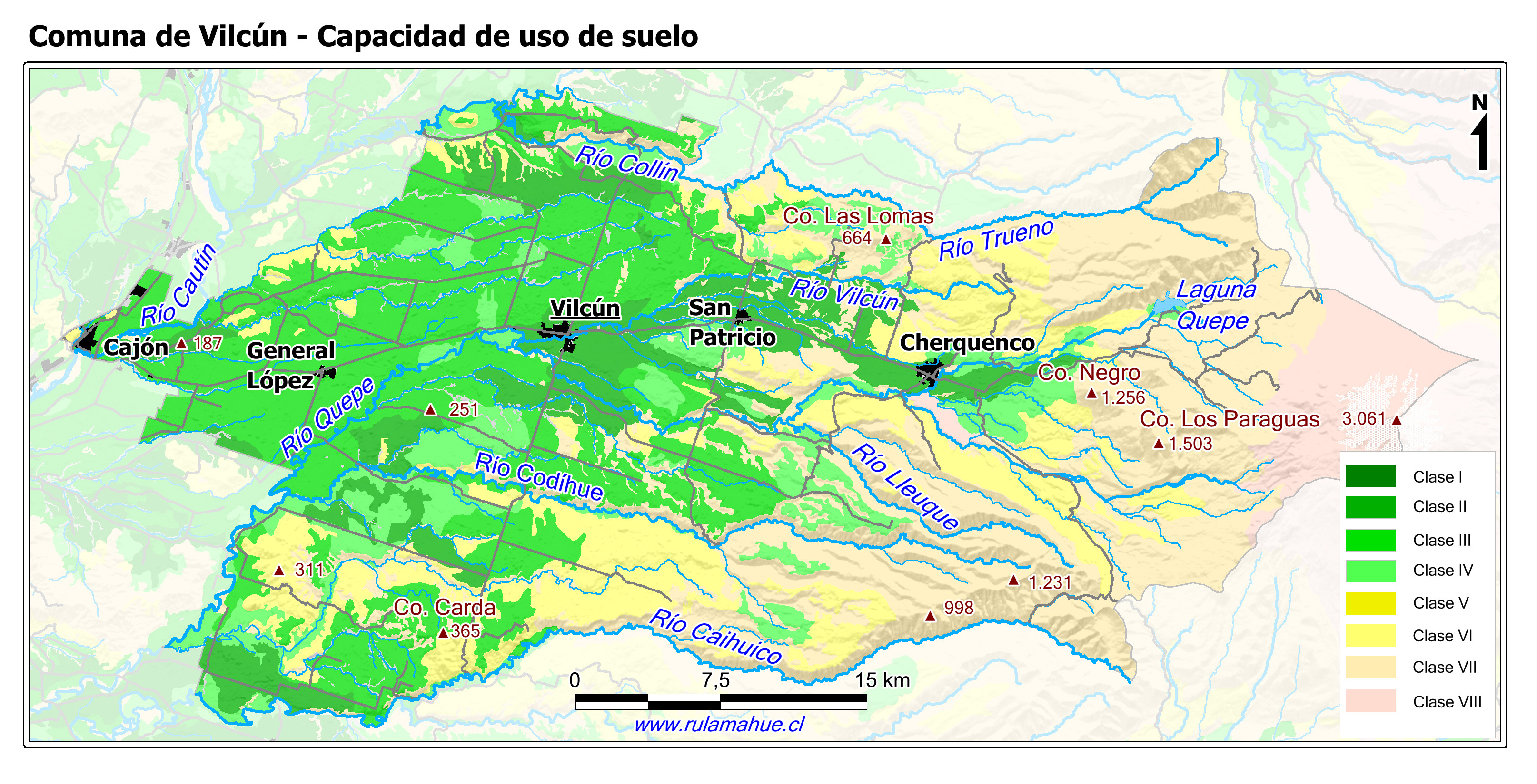 Mapa de la distribución de la capacidad de uso de los suelos CIREN.
