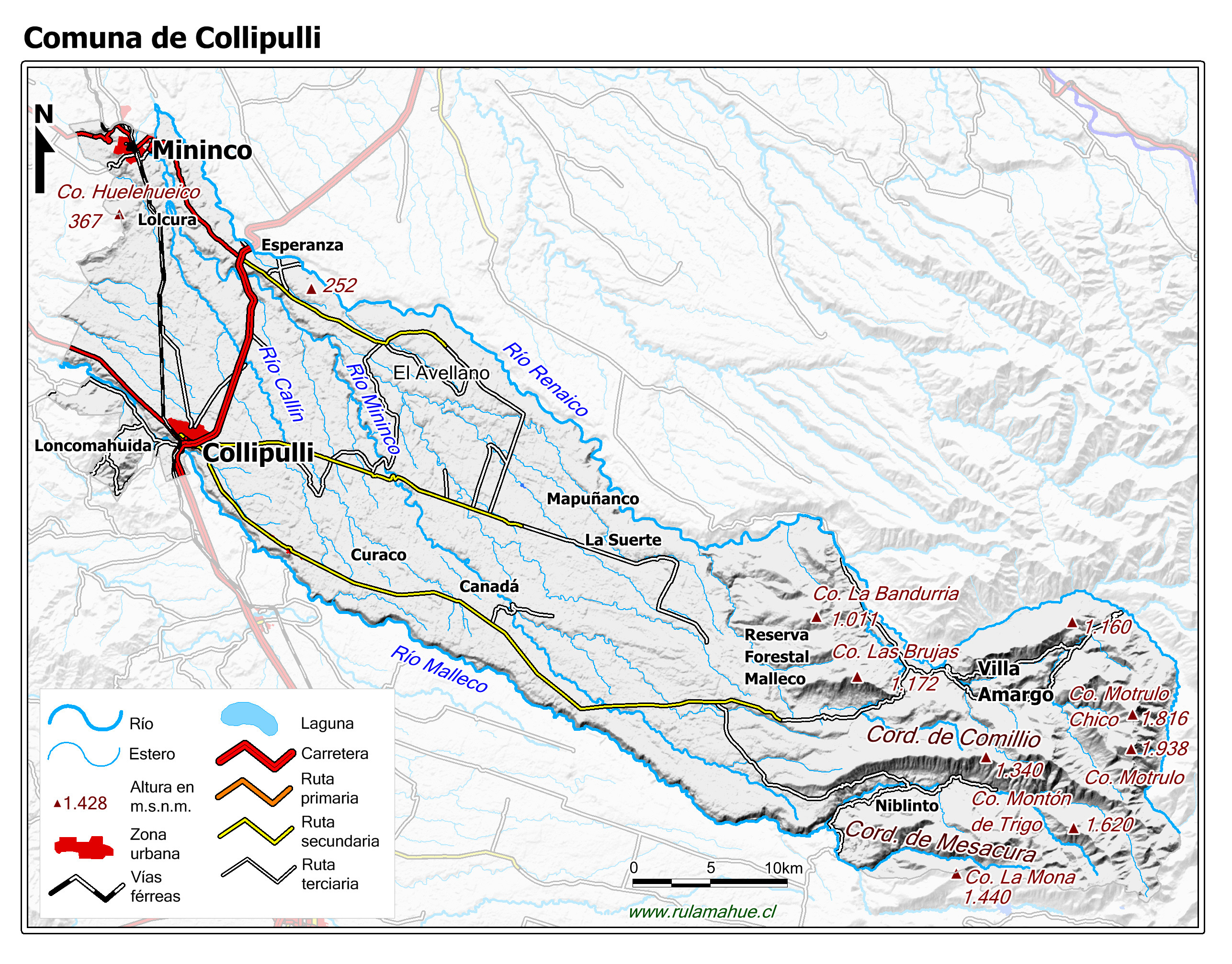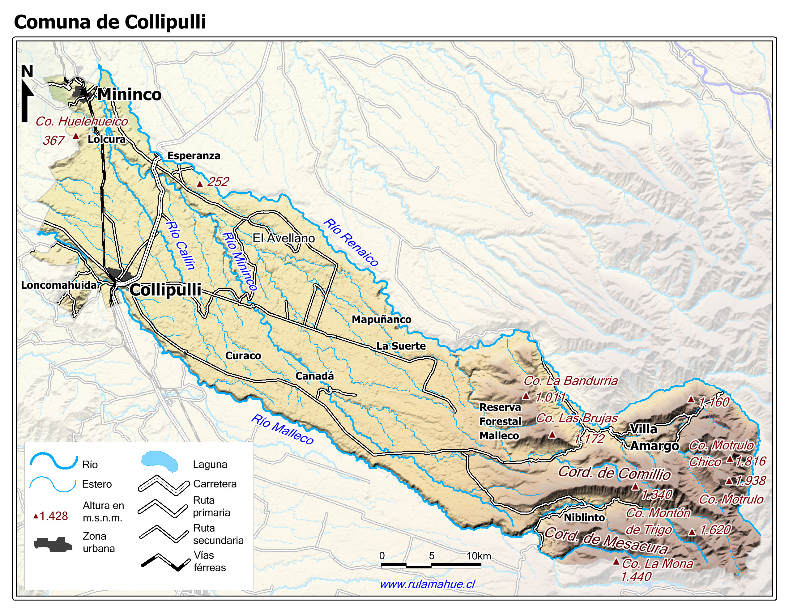 Mapa que muestra la ubicación y expansión de las zonas urbanas y la distribución de las casas rurales.
