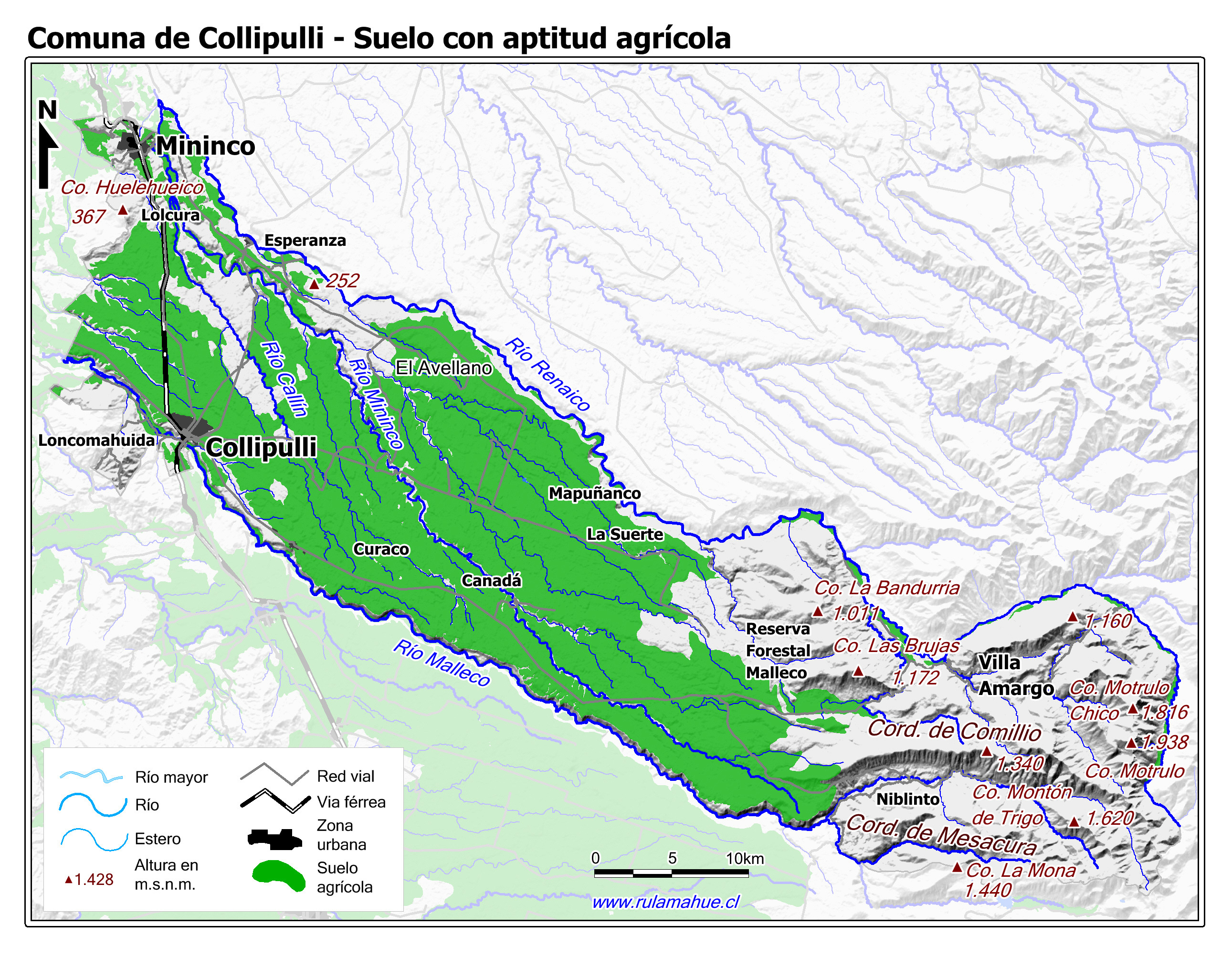 Mapa de la distribución de los suelos con aptitud agrícola según CIREN.