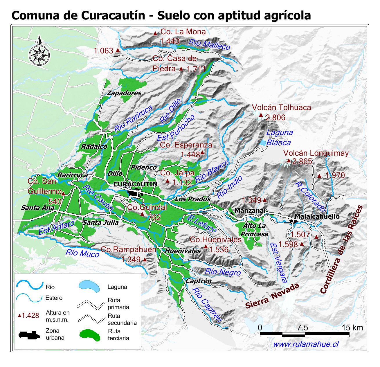 Mapa de la distribución de los suelos con aptitud agrícola según CIREN.