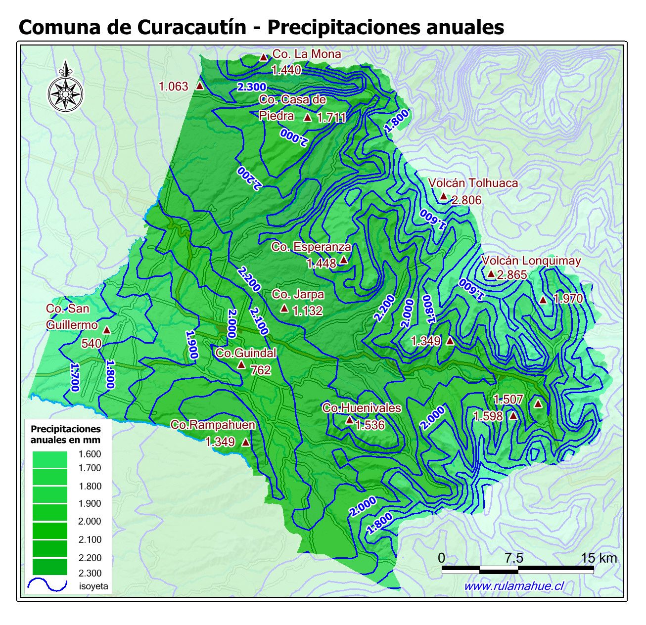 Mapa de la distribución de las precipitaciones anuales con datos del sitio web Worldclim.