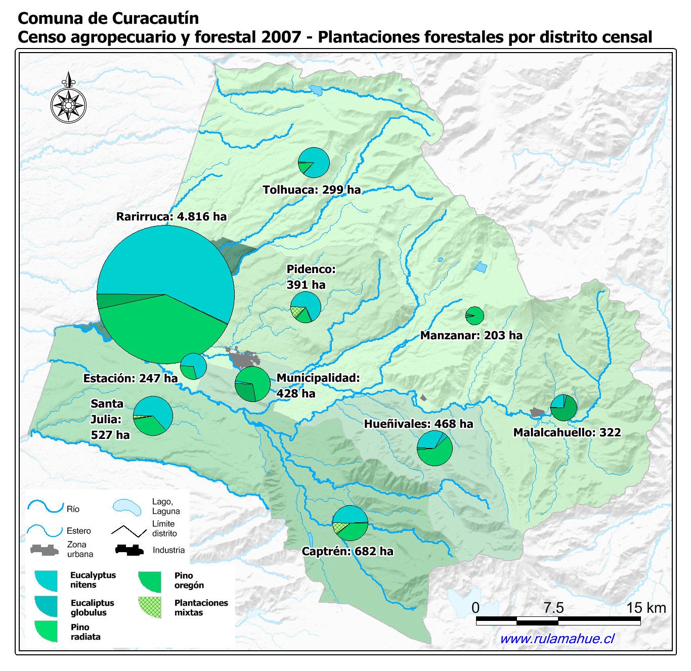 Censo agropecuario y forestal 2007. Plantaciones forestales por distrito censal.